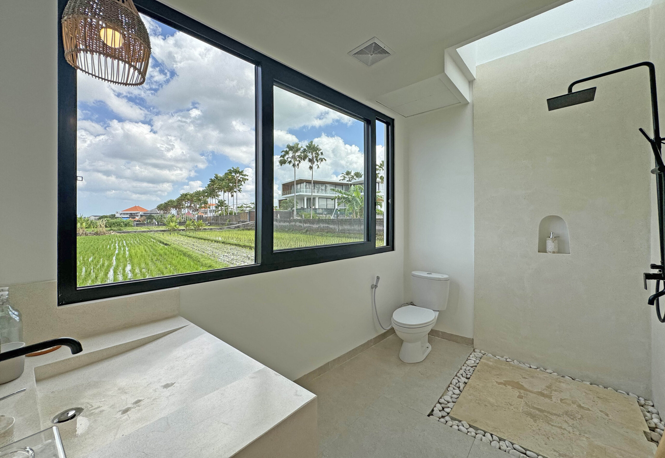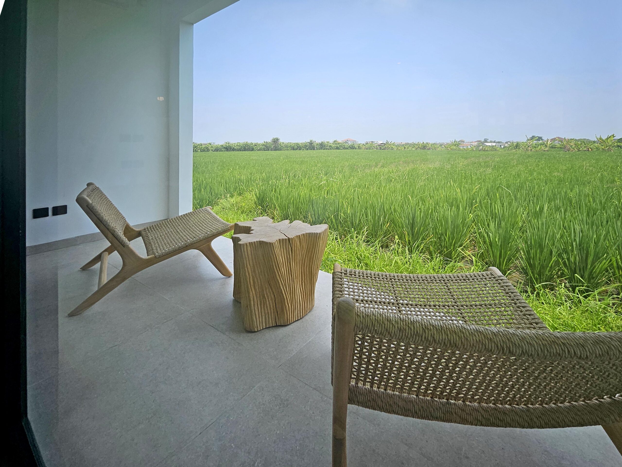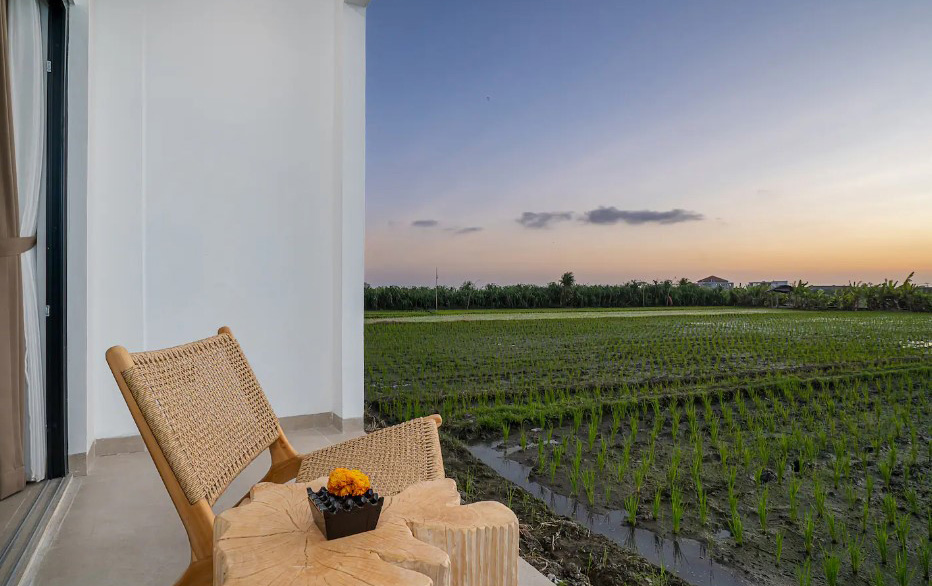 Belle villa neuve avec salon fermé et superbe vue sur les rizières.