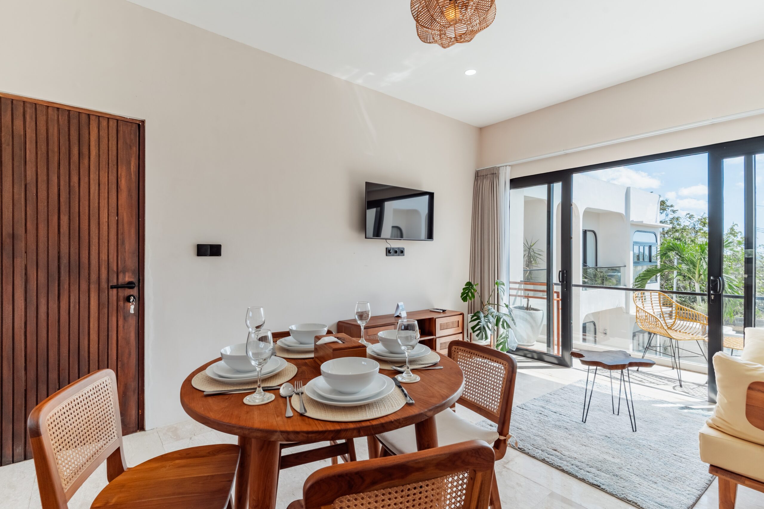 With a total size of 50 m², the apartment features 1 bedroom and 1 bathroom, designed for comfortable short term stays. Located upstairs and facing west, the unit enjoys beautiful afternoon light and direct sea views, making it especially attractive for guests seeking the Balangan lifestyle experience.
