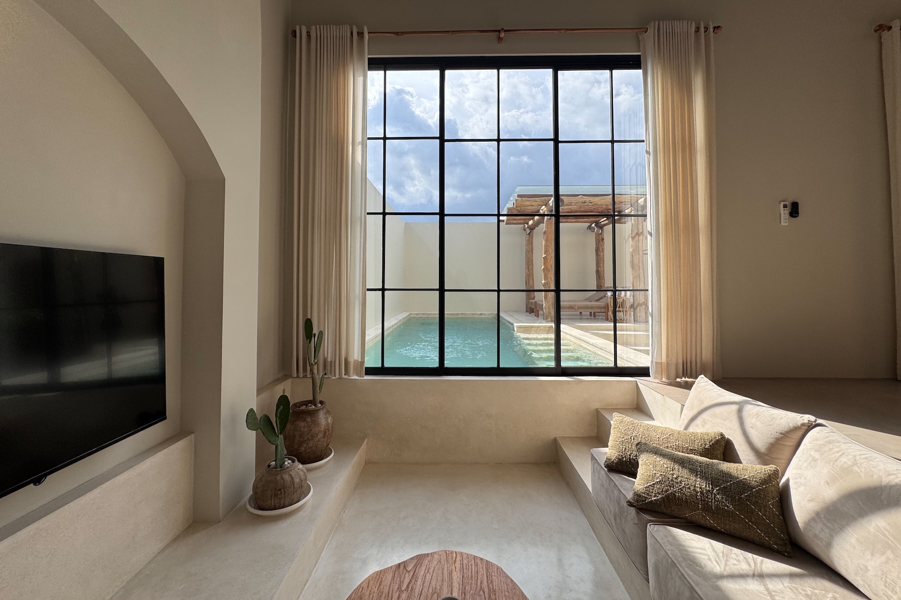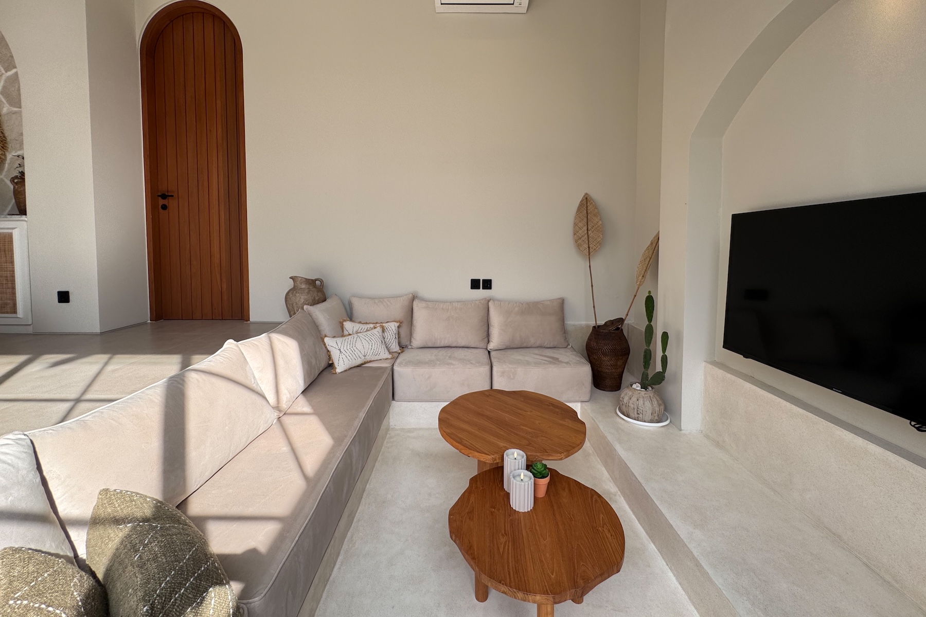 Built on 2.2 Are of land with a 220 m² build, the villa has been carefully designed to combine modern aesthetics with functional living. The interior features a fully enclosed living and dining area, a sleek modern kitchen, and beautifully appointed four bedrooms, each with high-quality finishes and ensuite bathrooms. Natural textures and warm tones create a timeless Mediterranean atmosphere throughout the home.