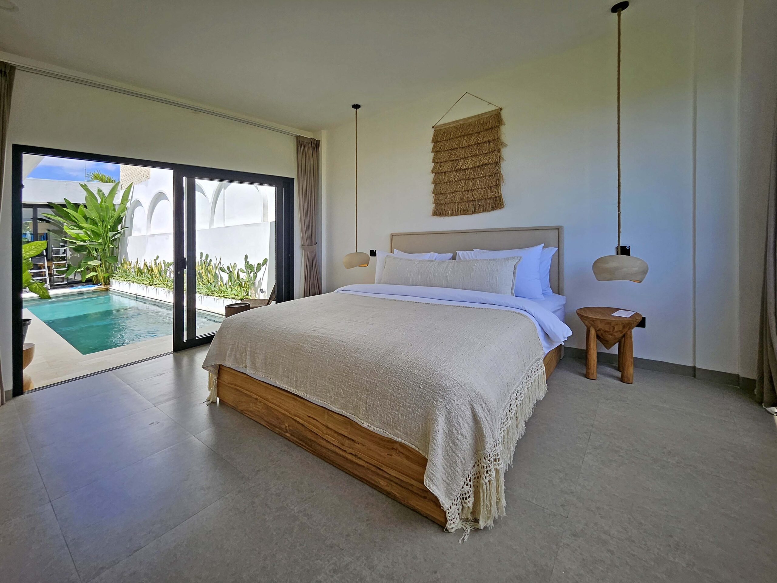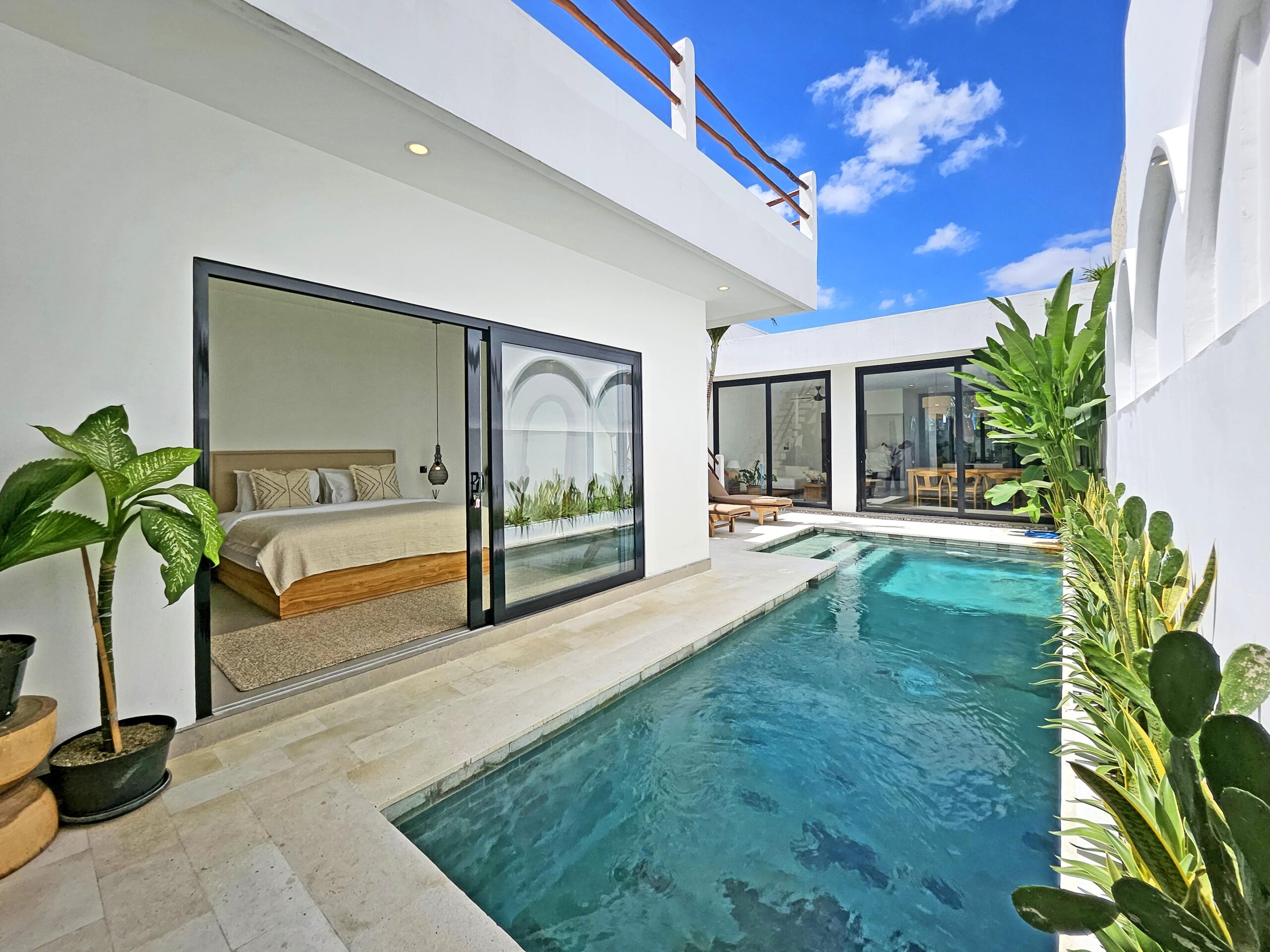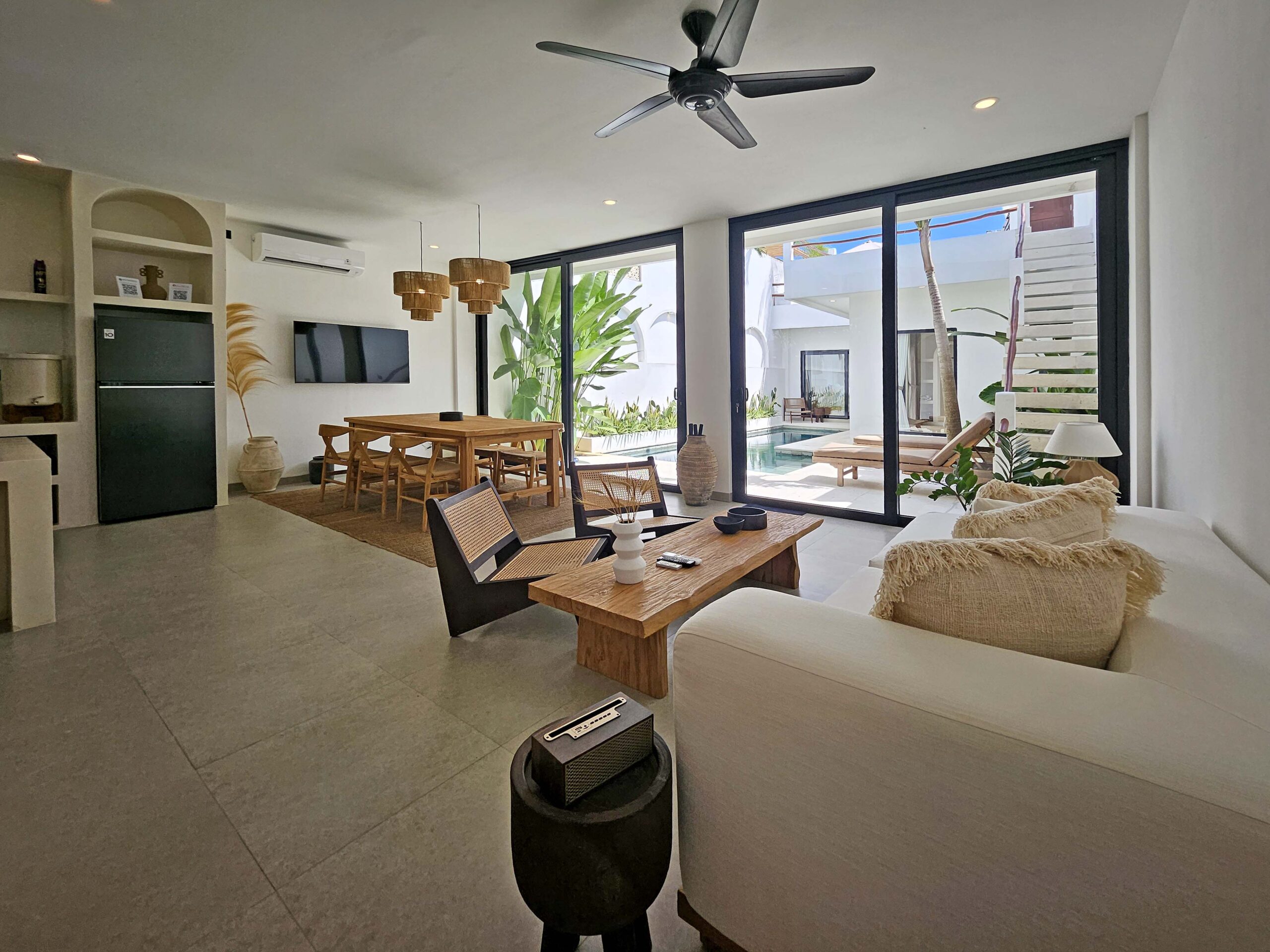Villa Lu’um is a brand-new, modern villa with an enclosed, air-conditioned living room and a private pool, located just 14 minutes from the beach in Pererenan.