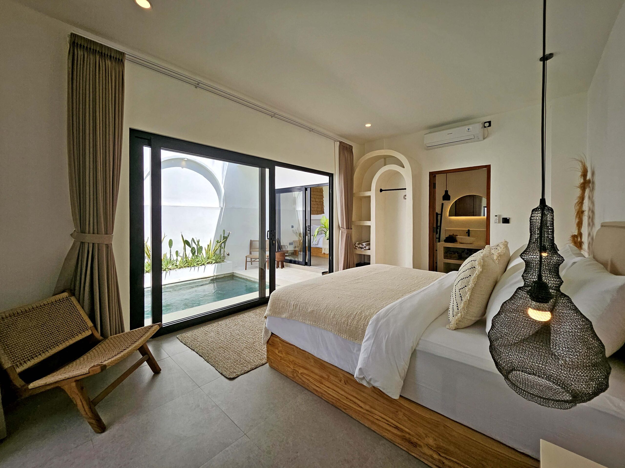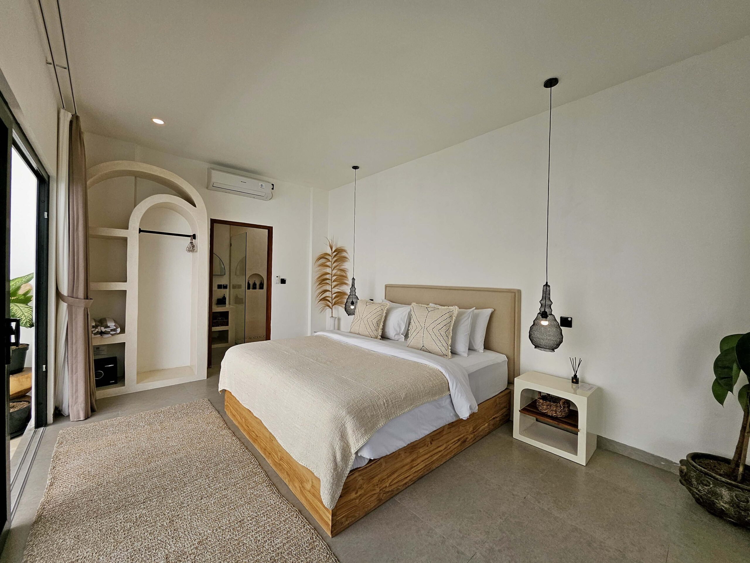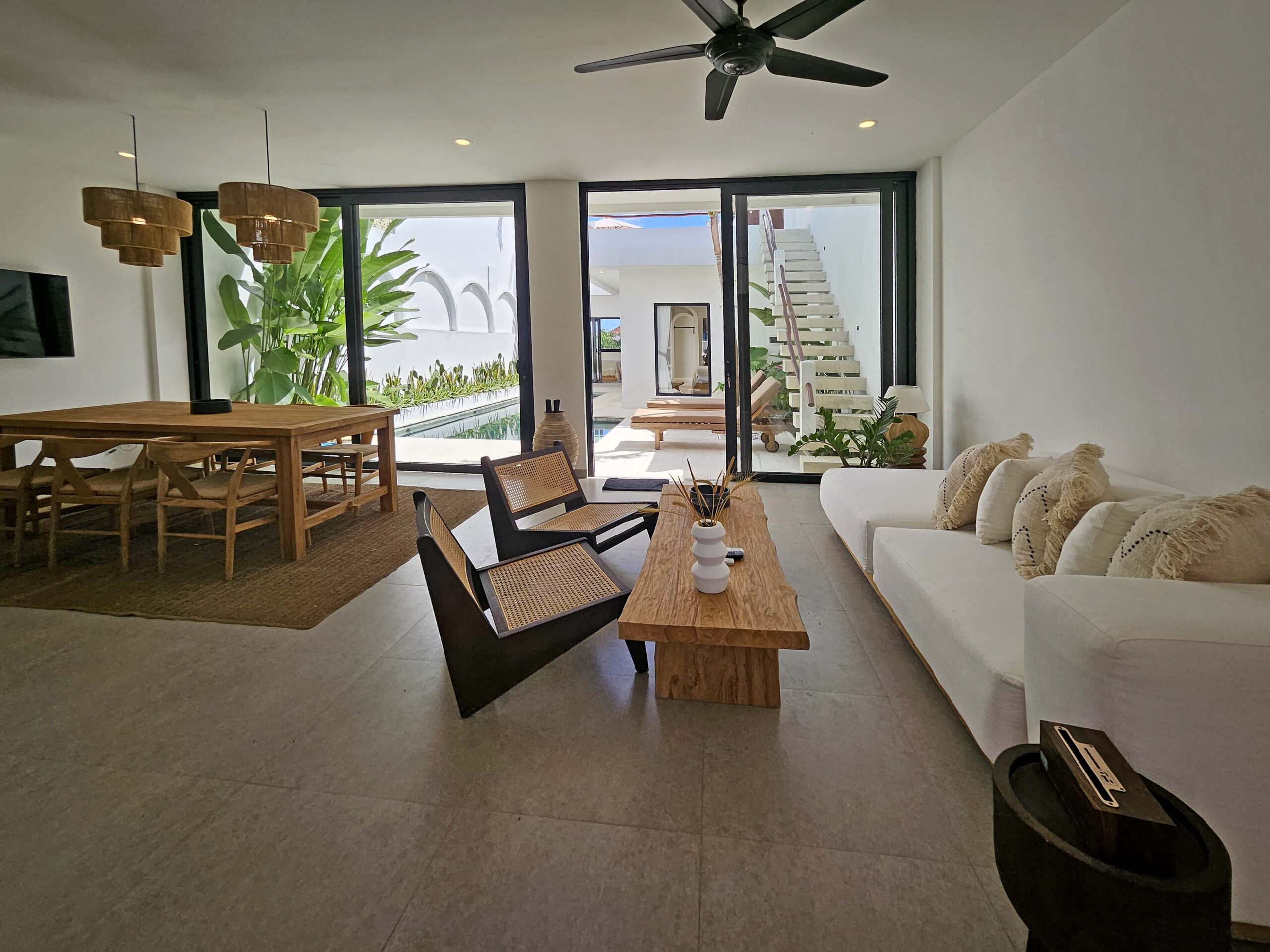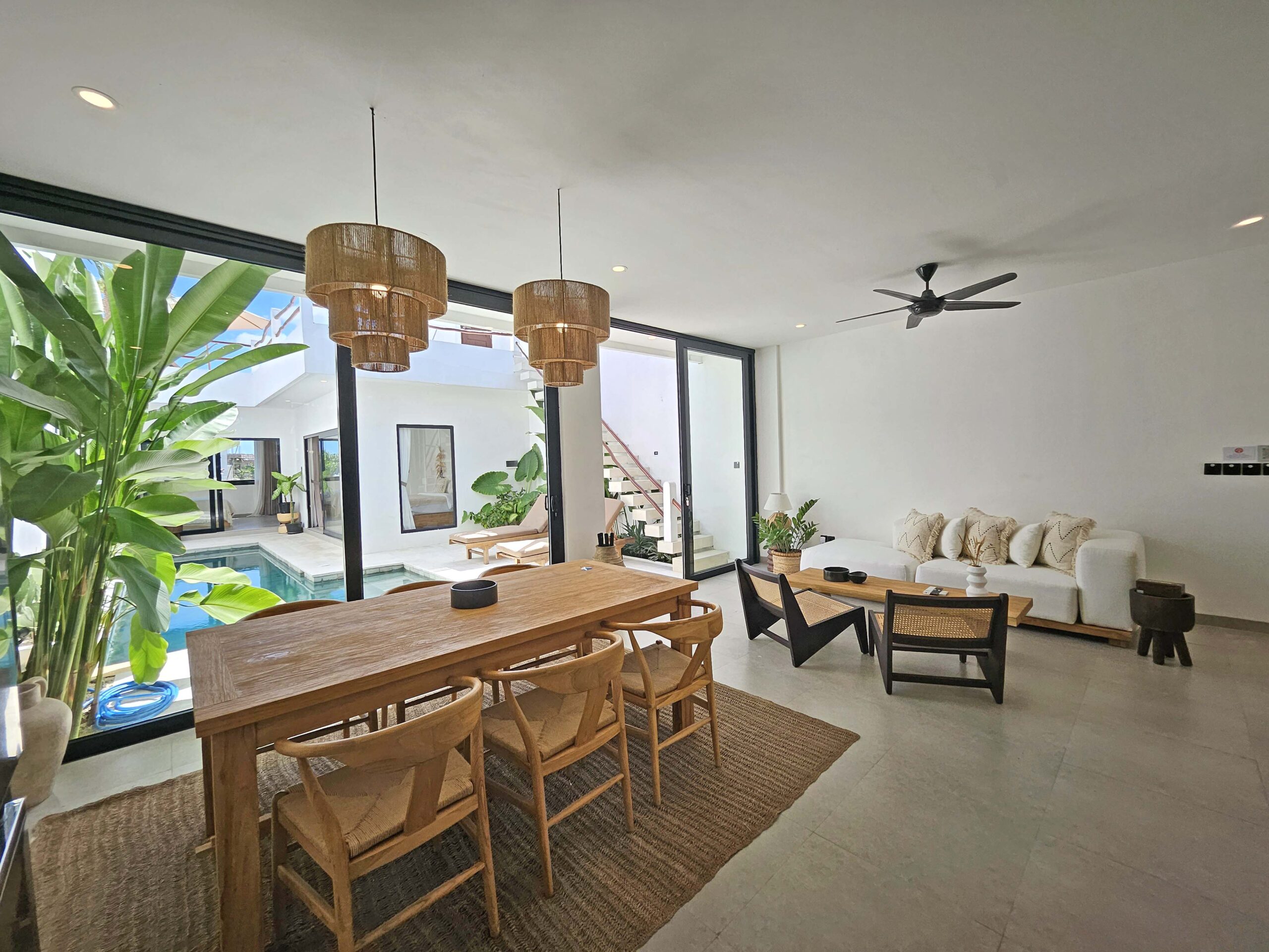Villa Lu’um is a brand-new, modern villa with an enclosed, air-conditioned living room and a private pool, located just 14 minutes from the beach in Pererenan.