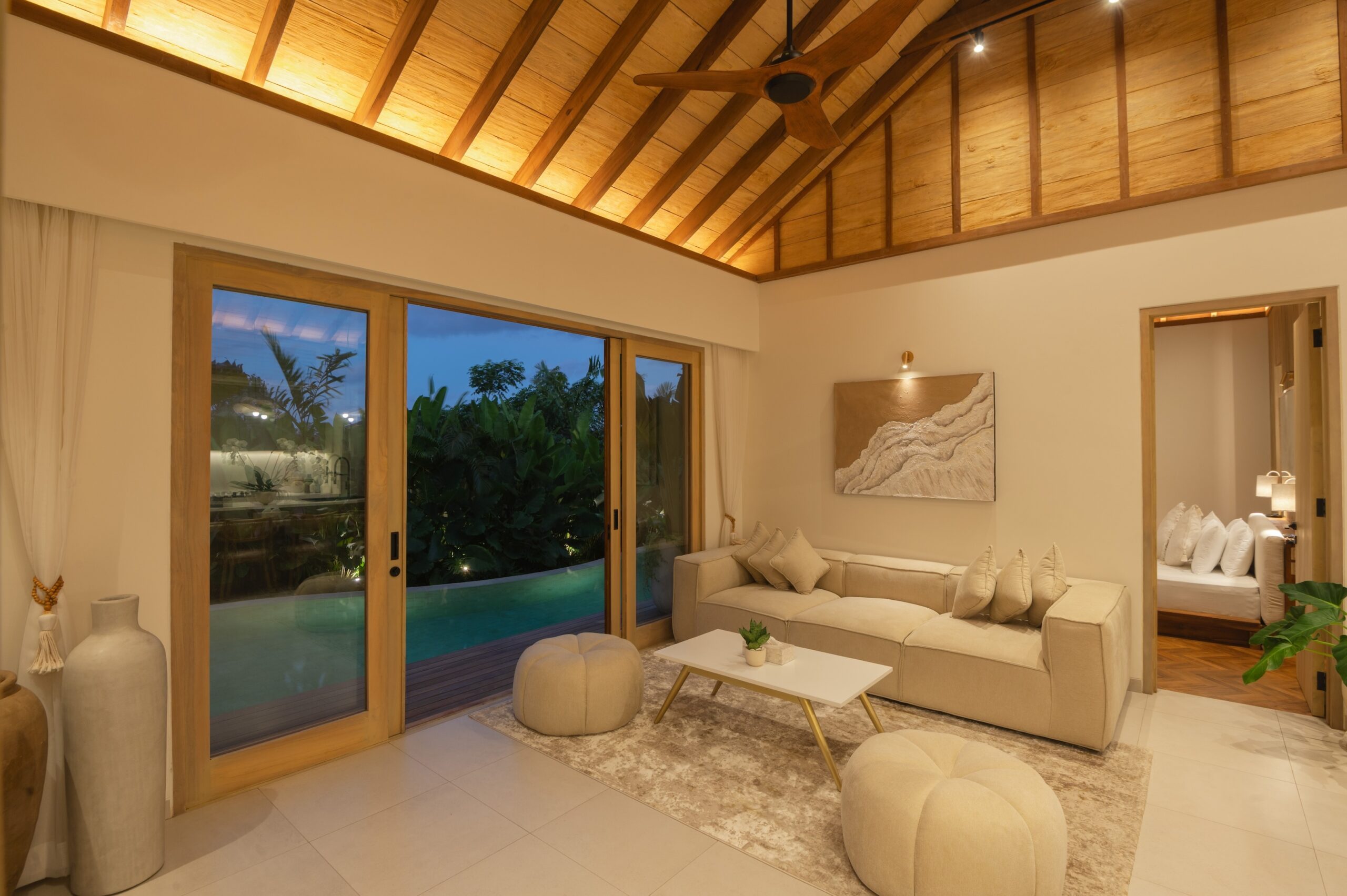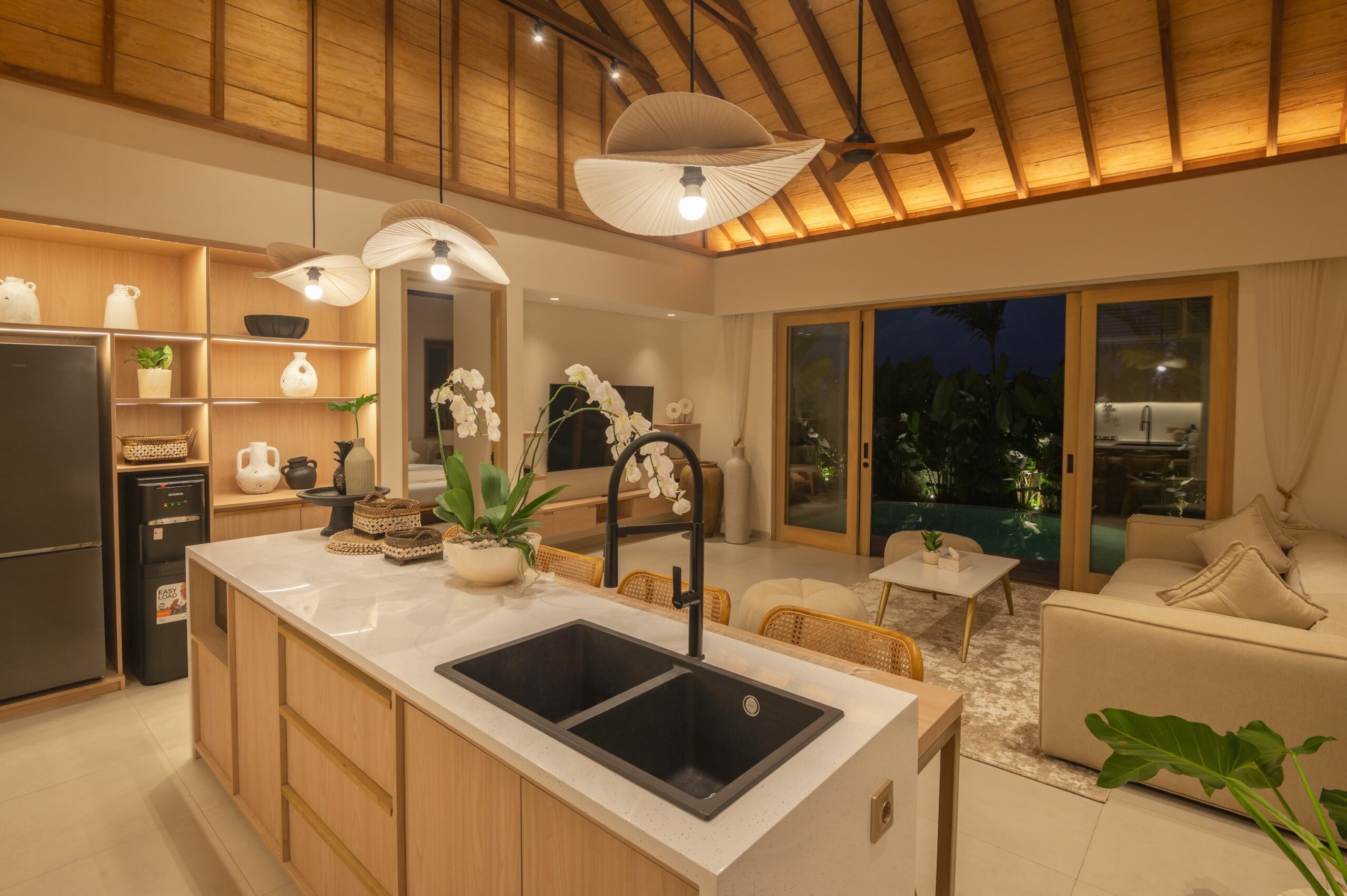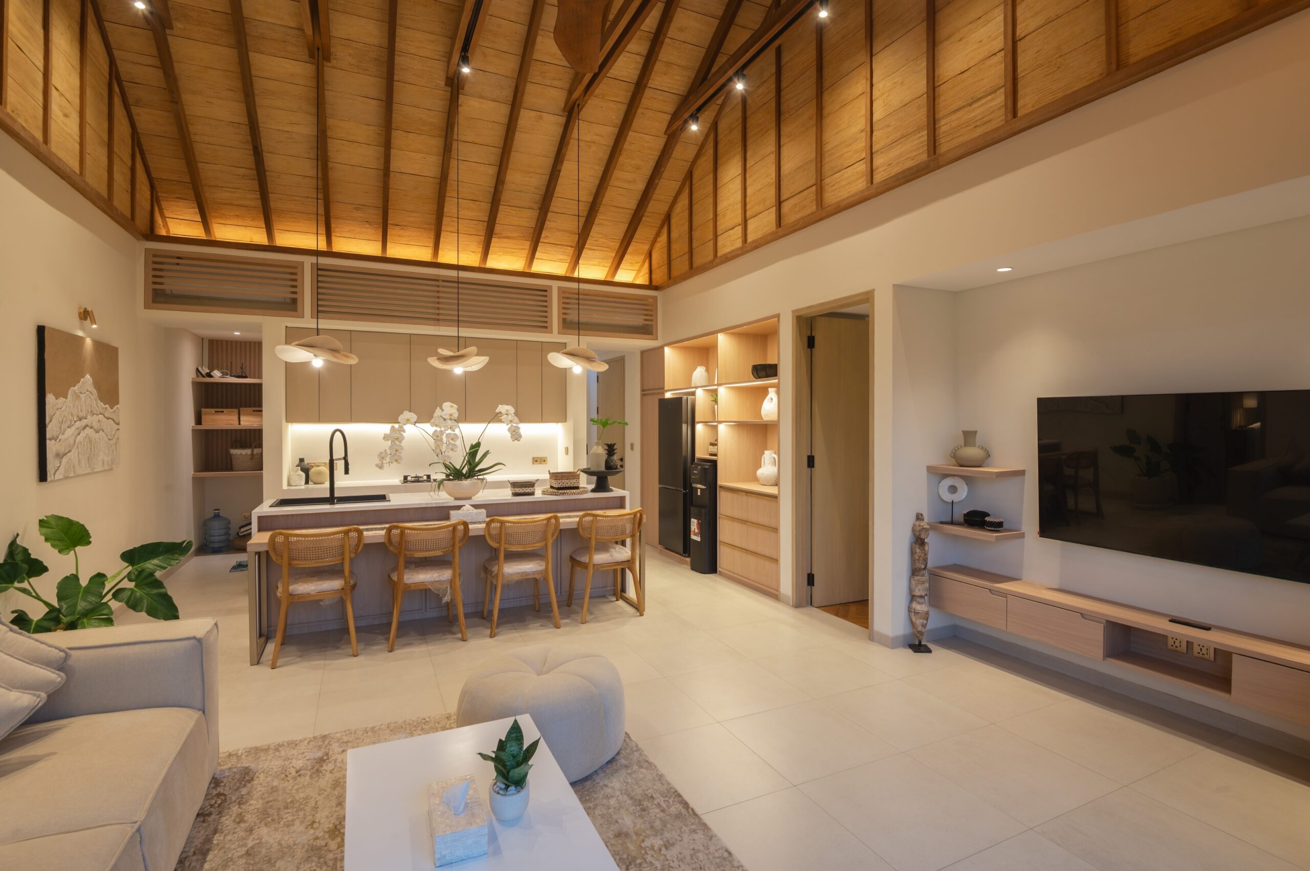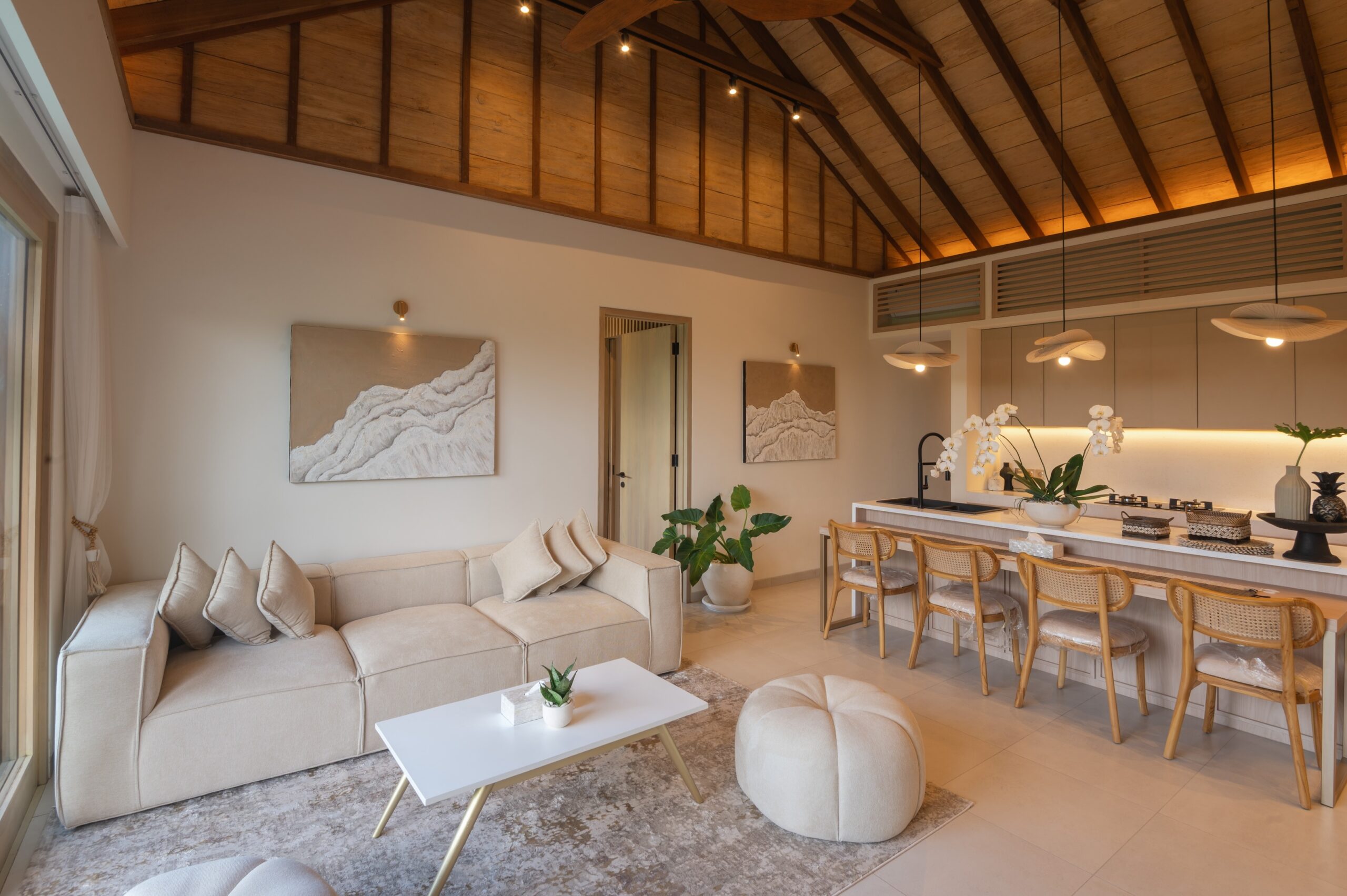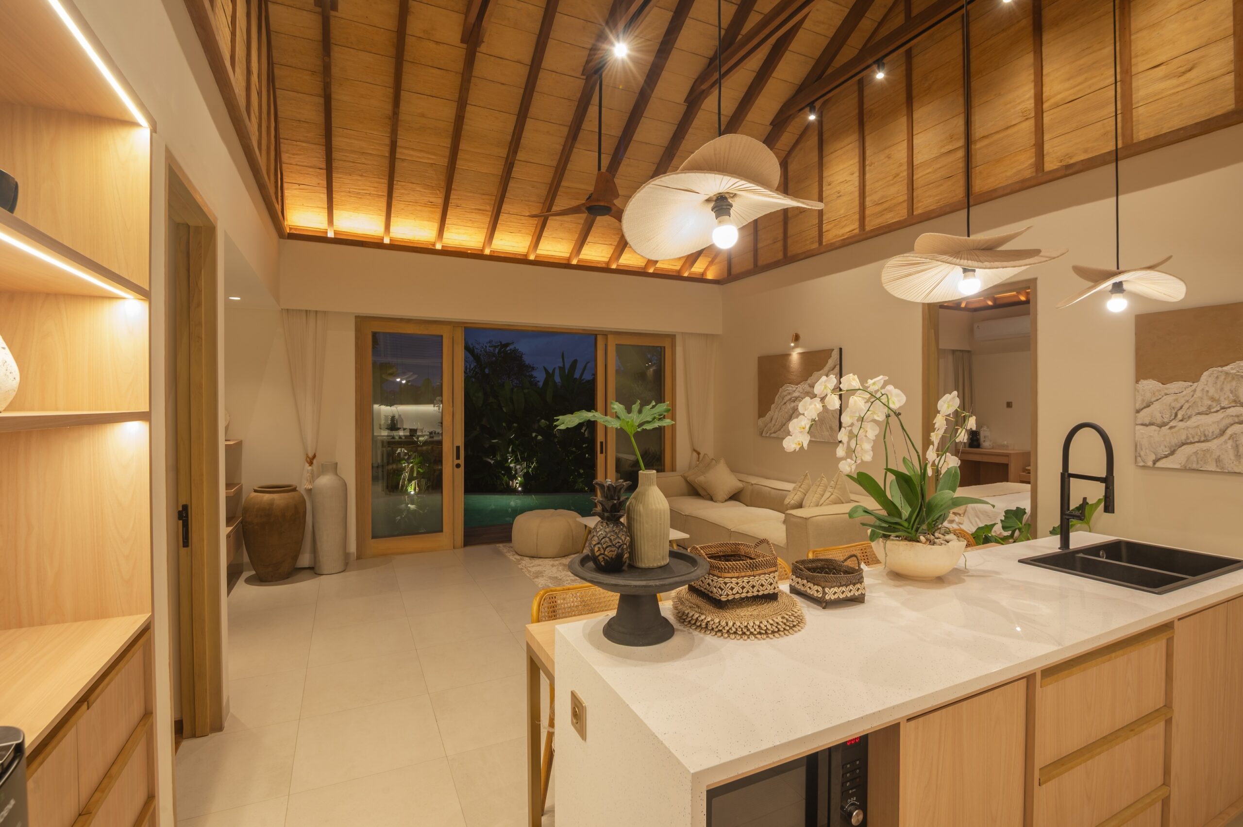 The villa includes 2 spacious bedrooms and 2 bathrooms, designed with a focus on comfort and privacy. High-quality finishes and a warm tropical aesthetic give the property a premium feel throughout.