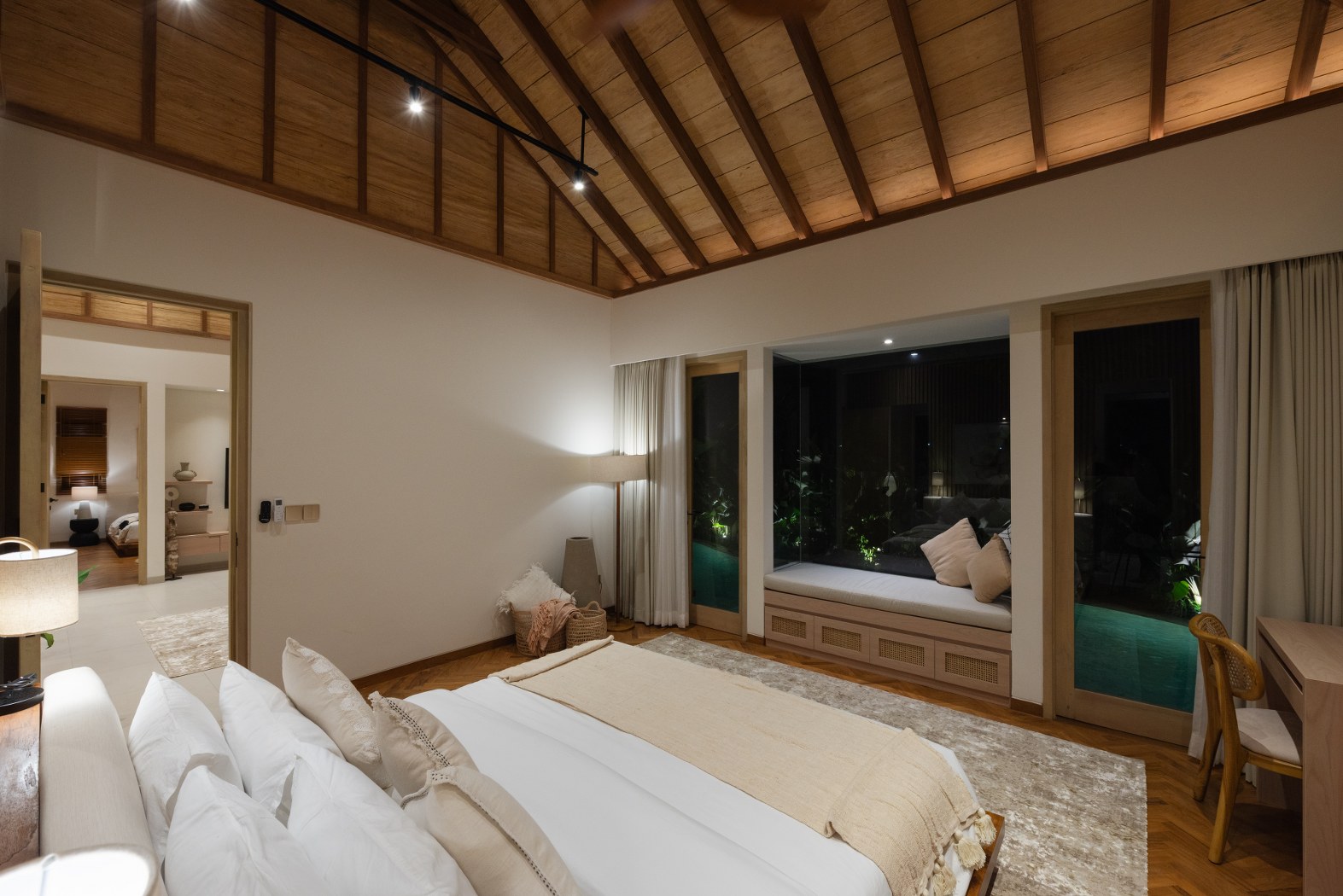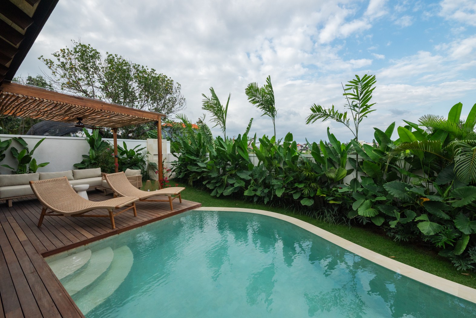 The outdoor area is a standout feature, with a large private swimming pool, landscaped garden, and multiple lounge areas—perfect for relaxing or entertaining. The layout is ideal for both personal use and creating a high-end guest experience for rentals.