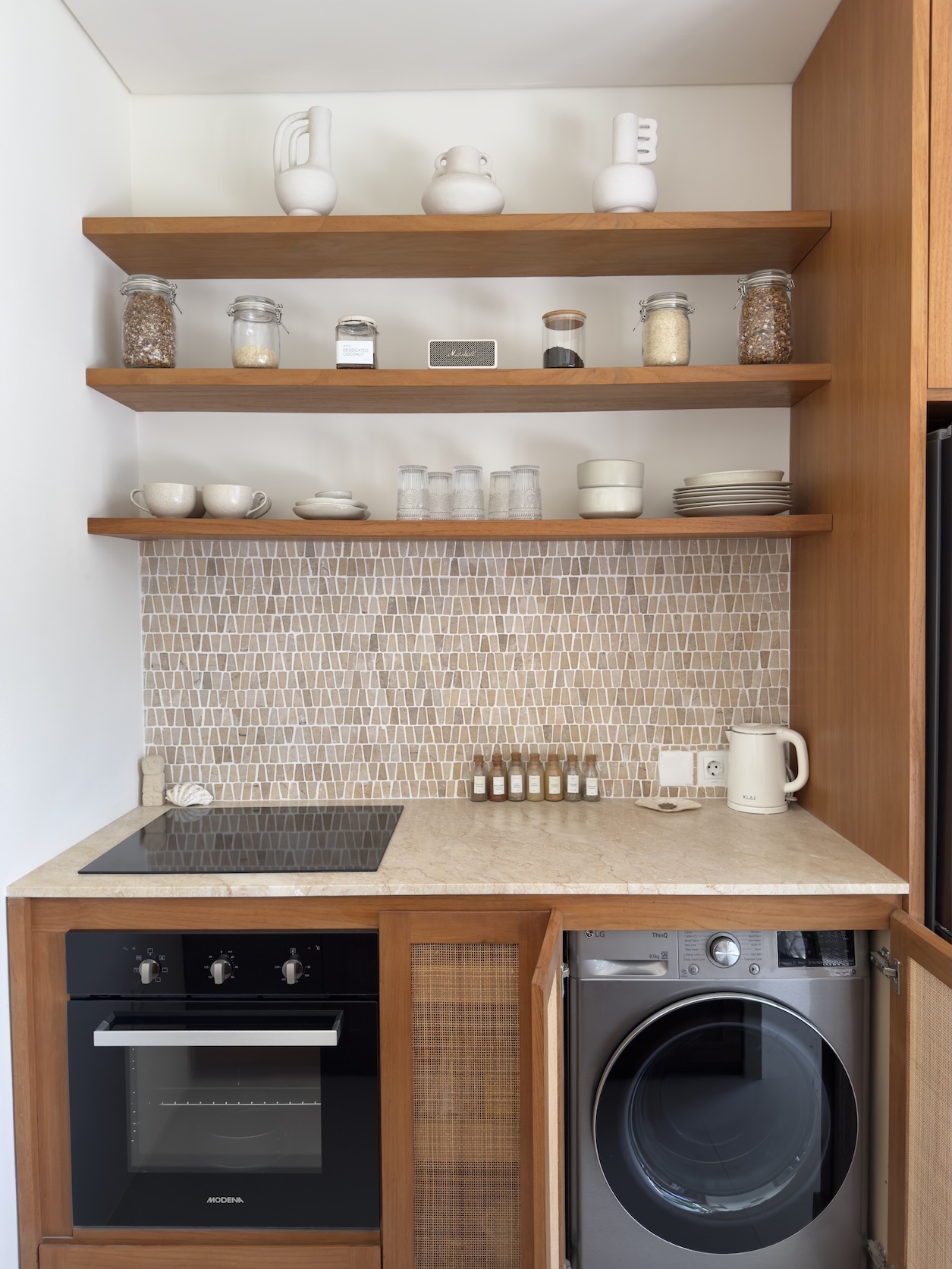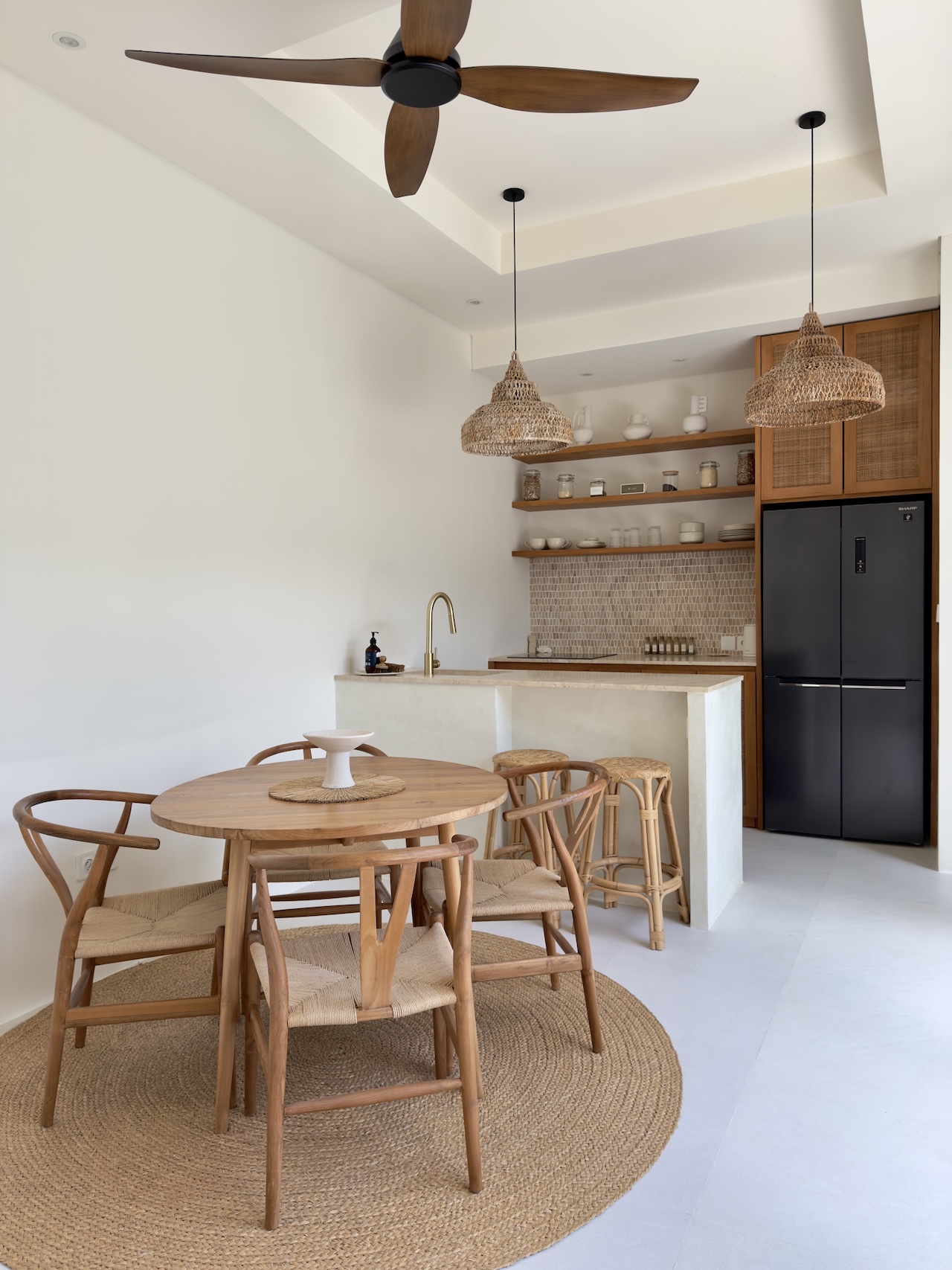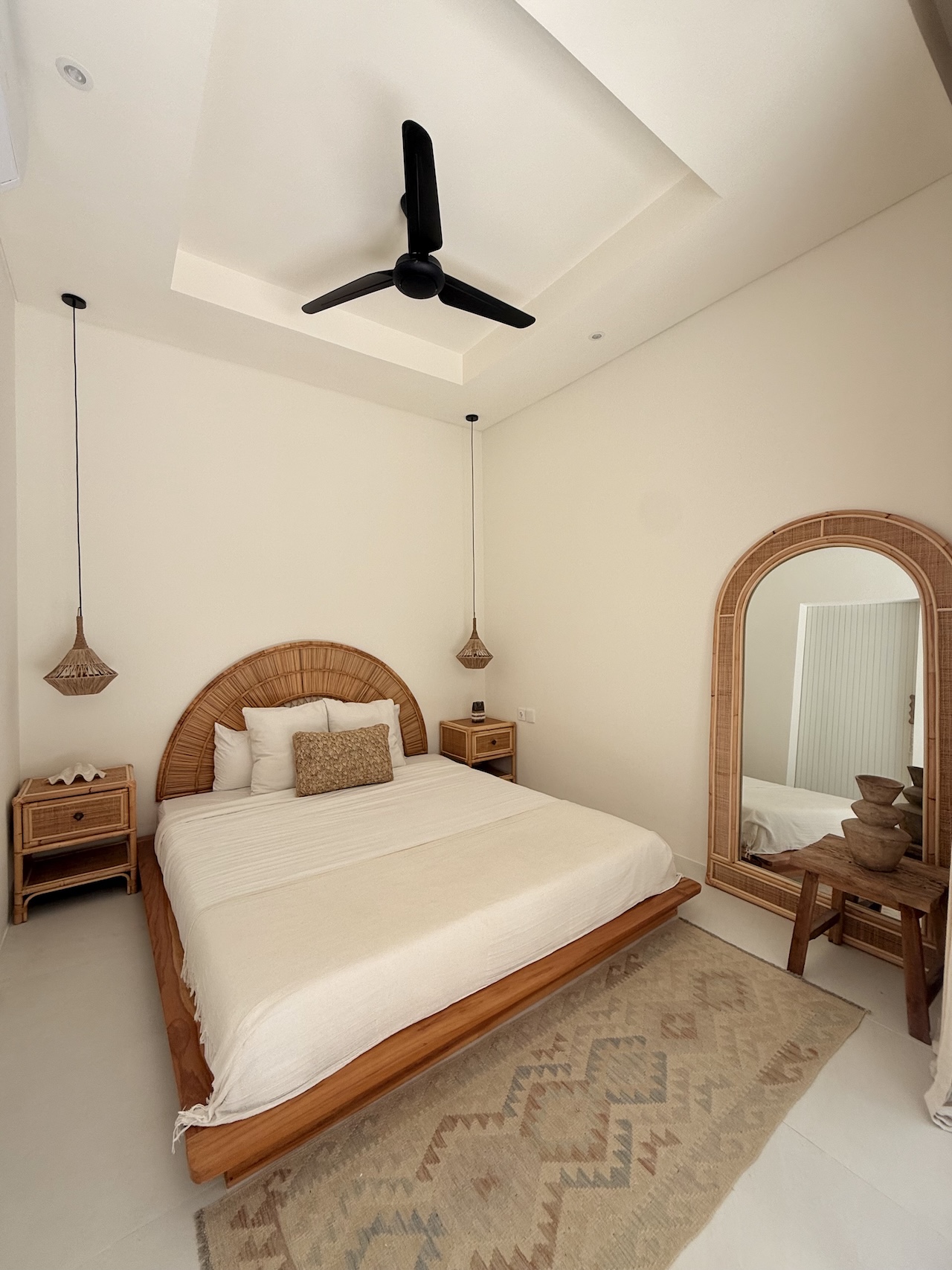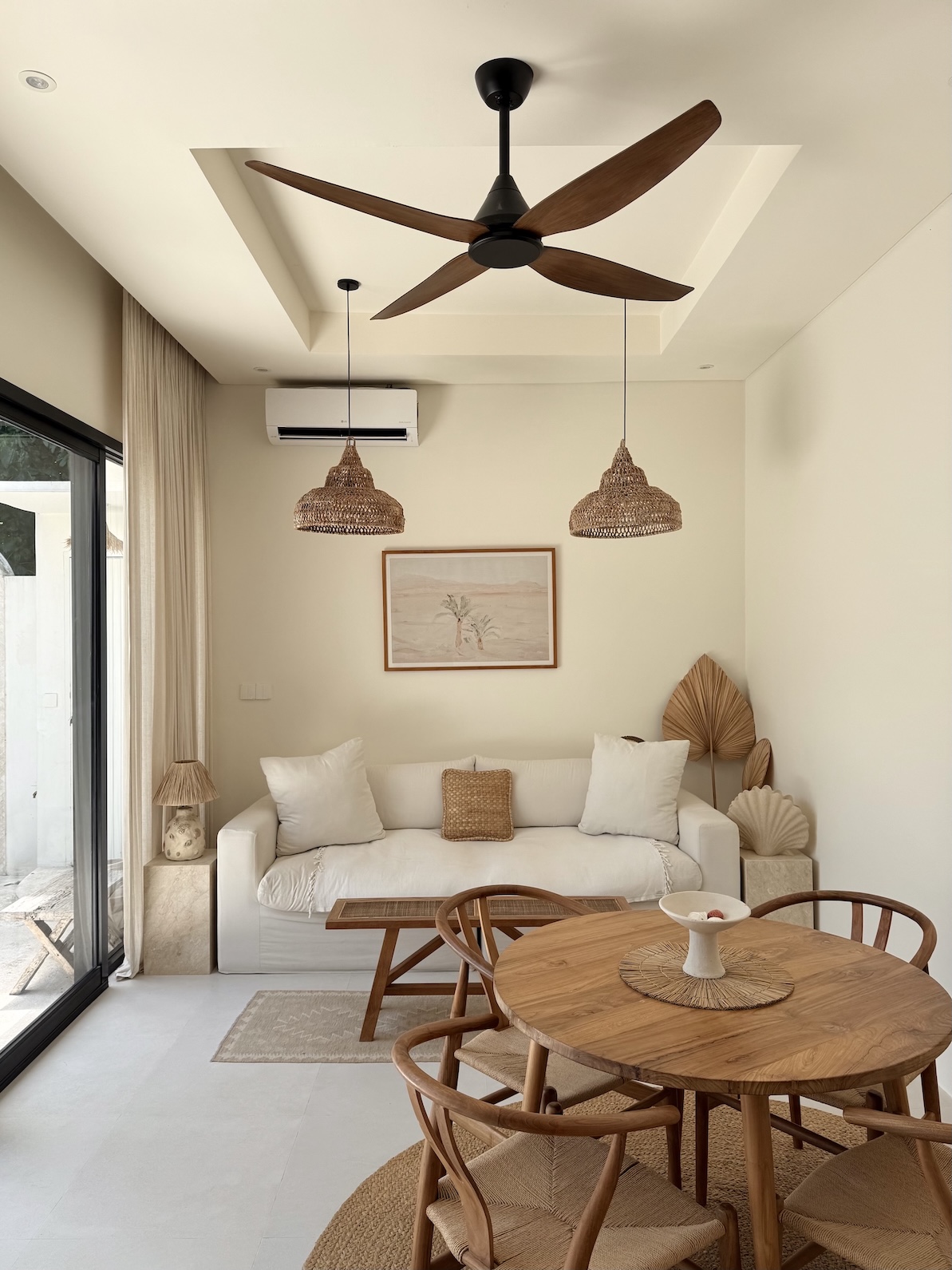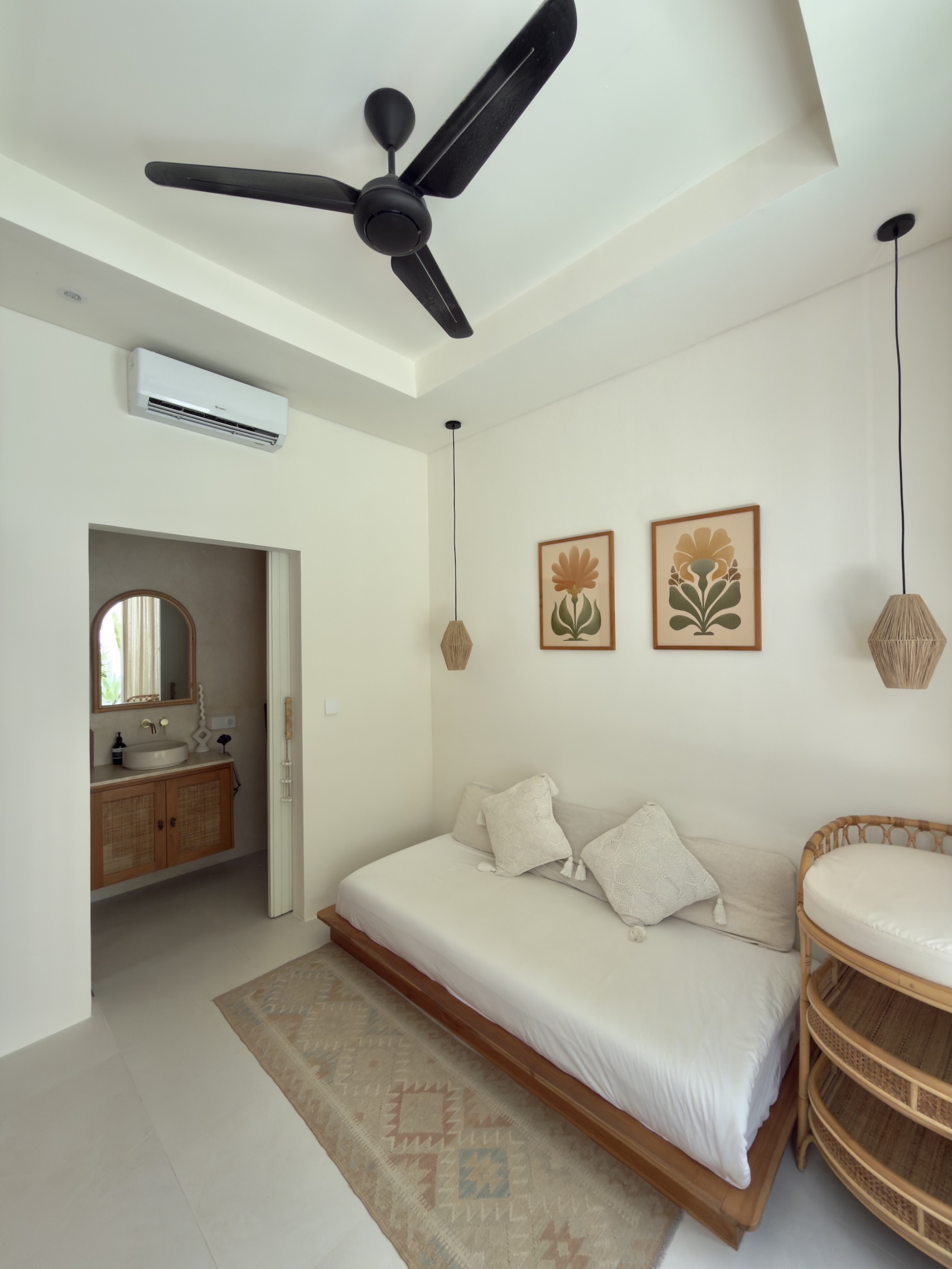 The design is simple and refined, with high-quality furniture, Ateson fittings, and thoughtful details throughout. Each room is equipped with both AC and ceiling fans, ensuring comfort year-round. The kitchen is fully equipped, including an oven, while additional features such as a washing machine, storage space, and a 100L water heater add everyday practicality.