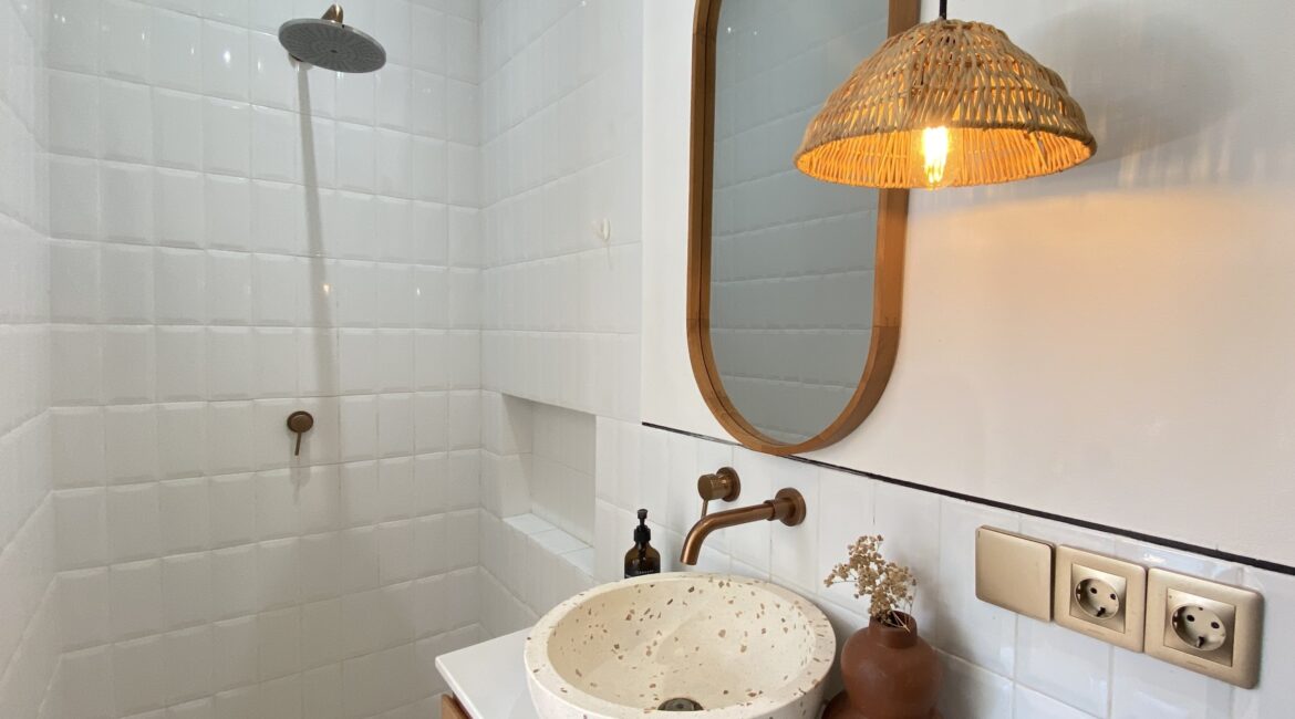 Completed in 2023 on 210 m² of land with a 150 m² build, the property features three bright bedrooms with ensuite bathrooms, an enclosed living and dining area, and a fully equipped closed kitchen. Outdoors, a refreshing swimming pool, garden space, and bike parking make daily living effortless, while the rooftop terrace provides the opportunity for relaxation or future expansion. A storage room adds convenience for longer stays or rentals.