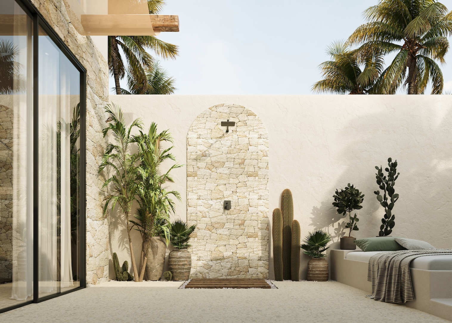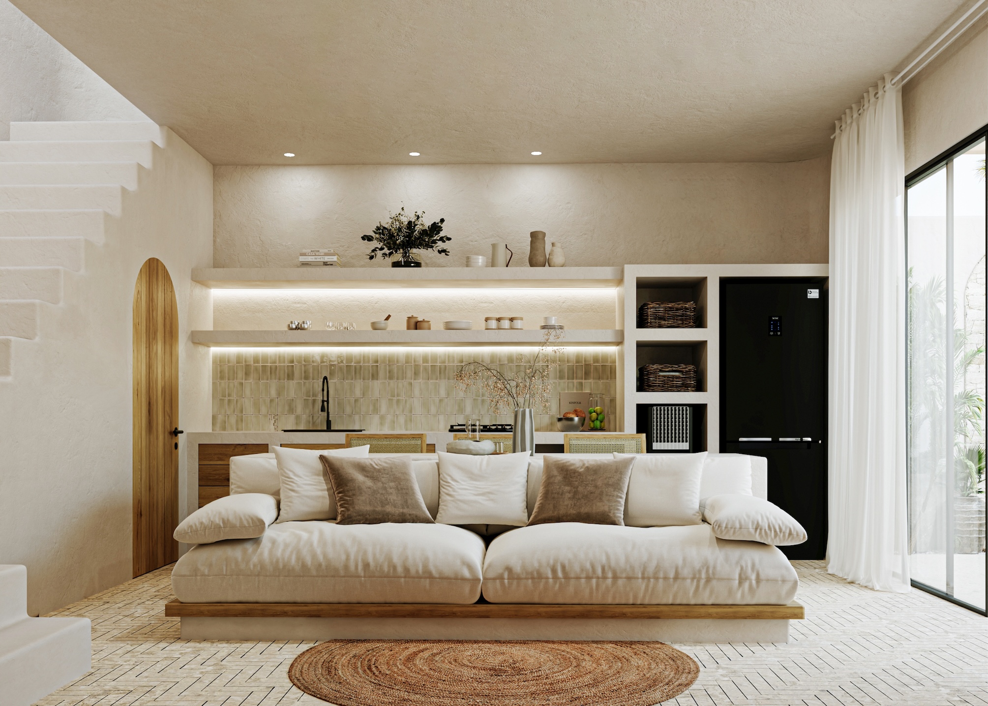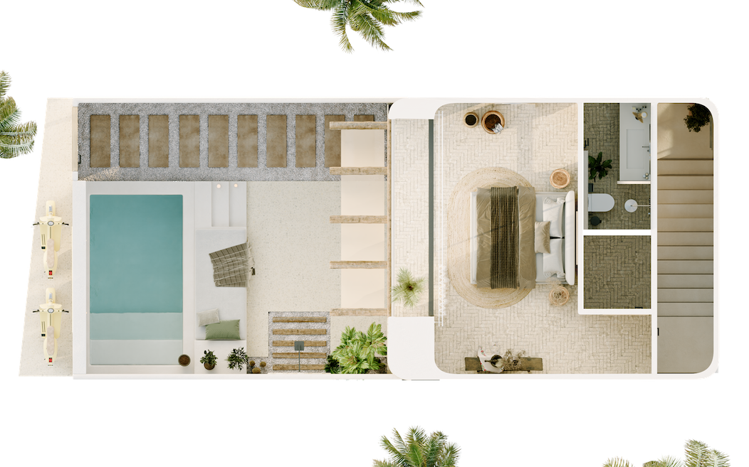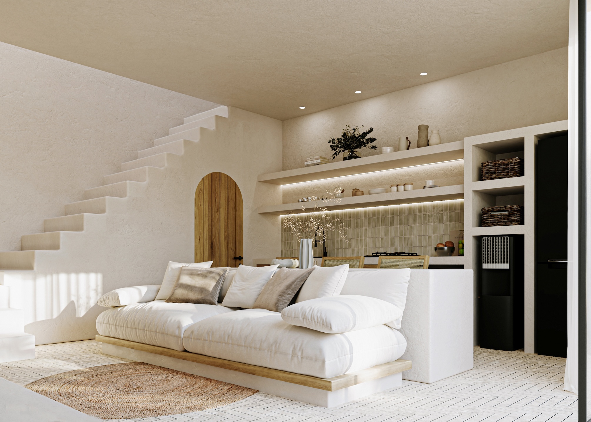 Each villa is thoughtfully designed with a seamless indoor-outdoor flow, combining natural materials, soft curves, and an earthy color palette. Handcrafted finishes, curved archways, and sun-drenched spaces create a perfect balance of tranquility and sophistication.