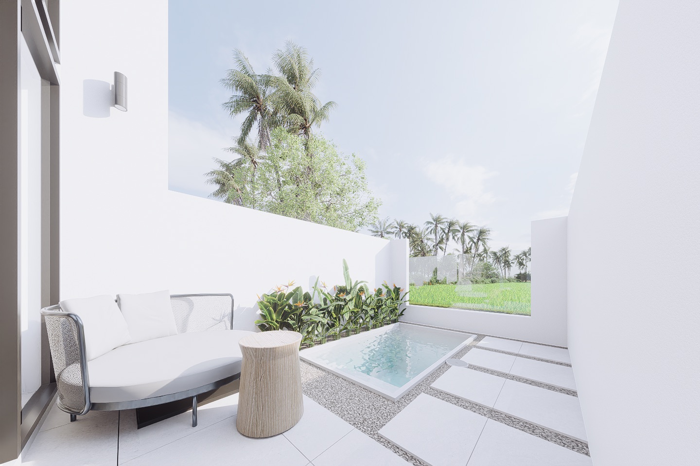 Each villa includes 1 bedroom, 1 bathroom, enclosed kitchen, living and dining areas, and a private plunge pool. Delivered semi-furnished, the units allow buyers flexibility to personalize interiors while keeping acquisition costs competitive.