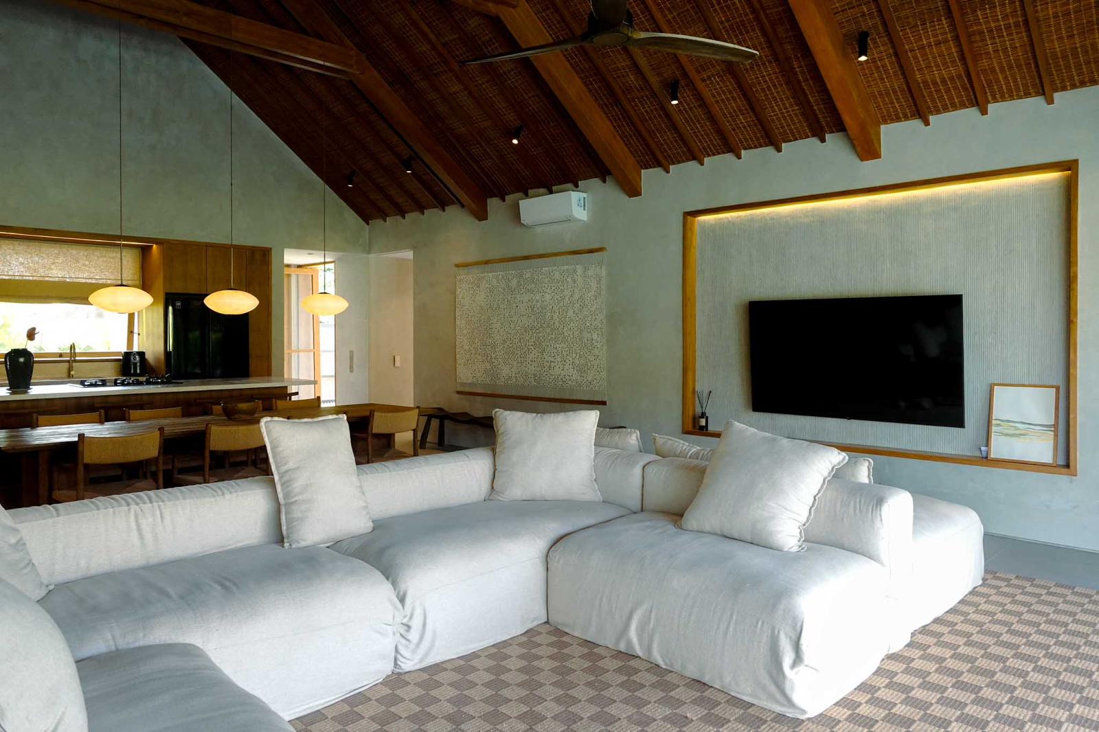 Designed on a single level, the villa offers seamless indoor-outdoor living, with all rooms opening directly onto the garden and pool area. The architecture emphasizes clean lines, natural tones, and openness, making it ideal for both comfortable living and high-end rental use.