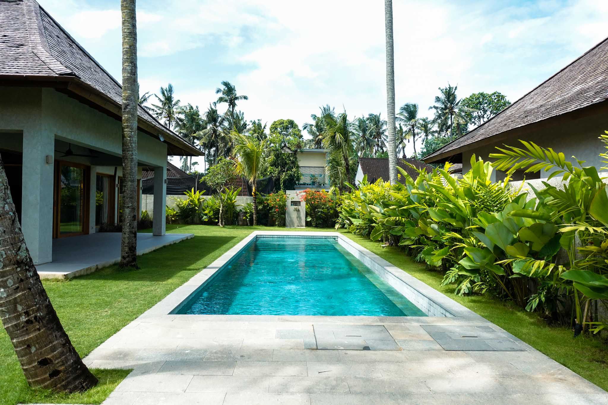 Outside, the expansive garden offers rare breathing space—something increasingly hard to find in Bali—while the 14-meter pool becomes the central lifestyle feature, perfect for relaxing, entertaining, or hosting guests.