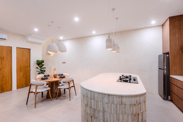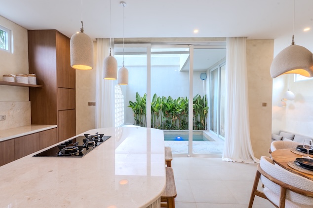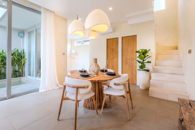 Each villa showcases a refined Mediterranean tropical design with bright, airy interiors, clean lines, and natural textures. Designed for seamless indoor-outdoor living, the villas feature hybrid living, dining, and kitchen areas that can be opened to enjoy Bali’s tropical climate or closed for air-conditioned comfort.