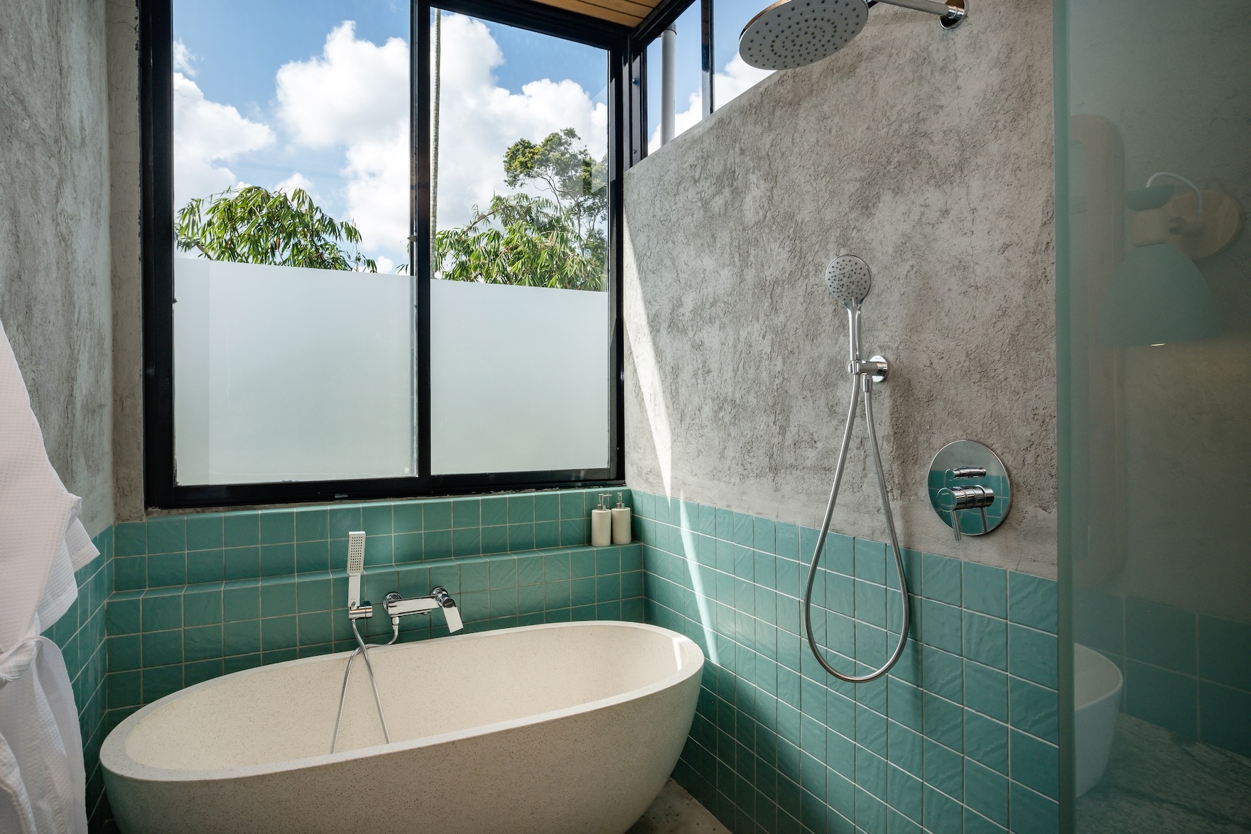 Set on 263 m² of land with 227 m² of living space, the villa includes 3 spacious bedrooms and 4 bathrooms, a private 33 m² swimming pool, and an expansive 52 m² terrace ideal for relaxing and entertaining. The terrace and pool enjoy direct jungle views, while the second floor bedrooms capture beautiful sunset views. Villas are built on a 9 meter high retaining wall, guaranteeing breathtaking panoramas.