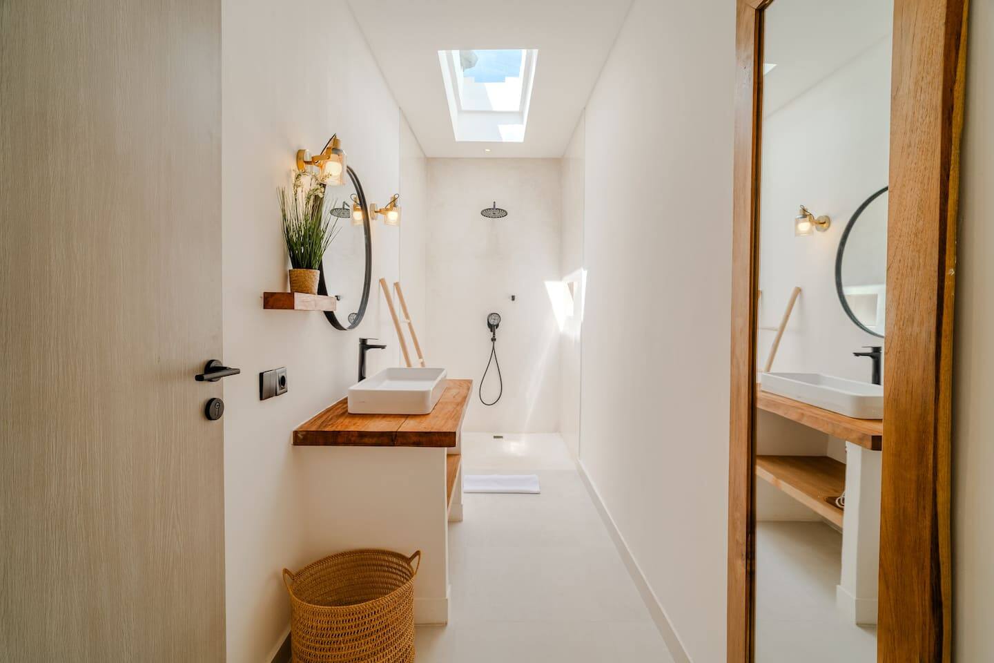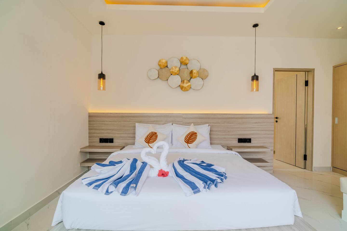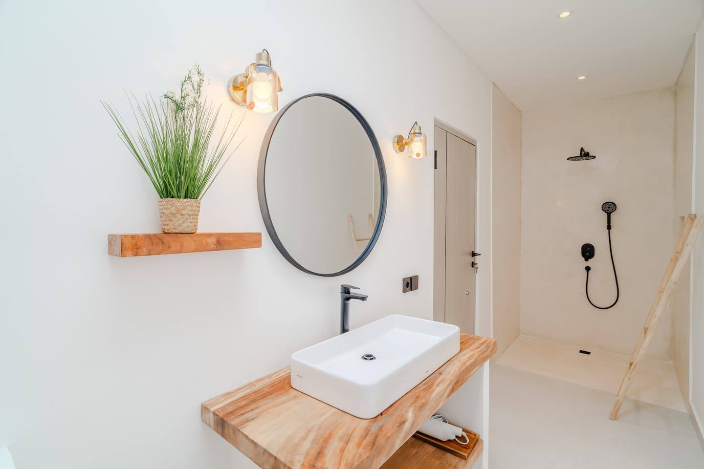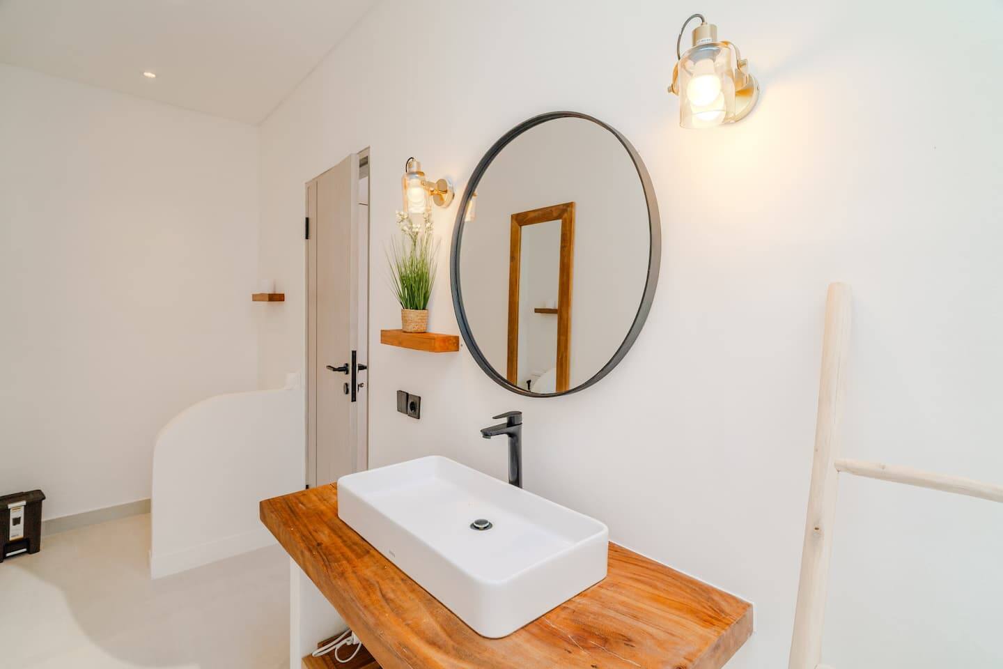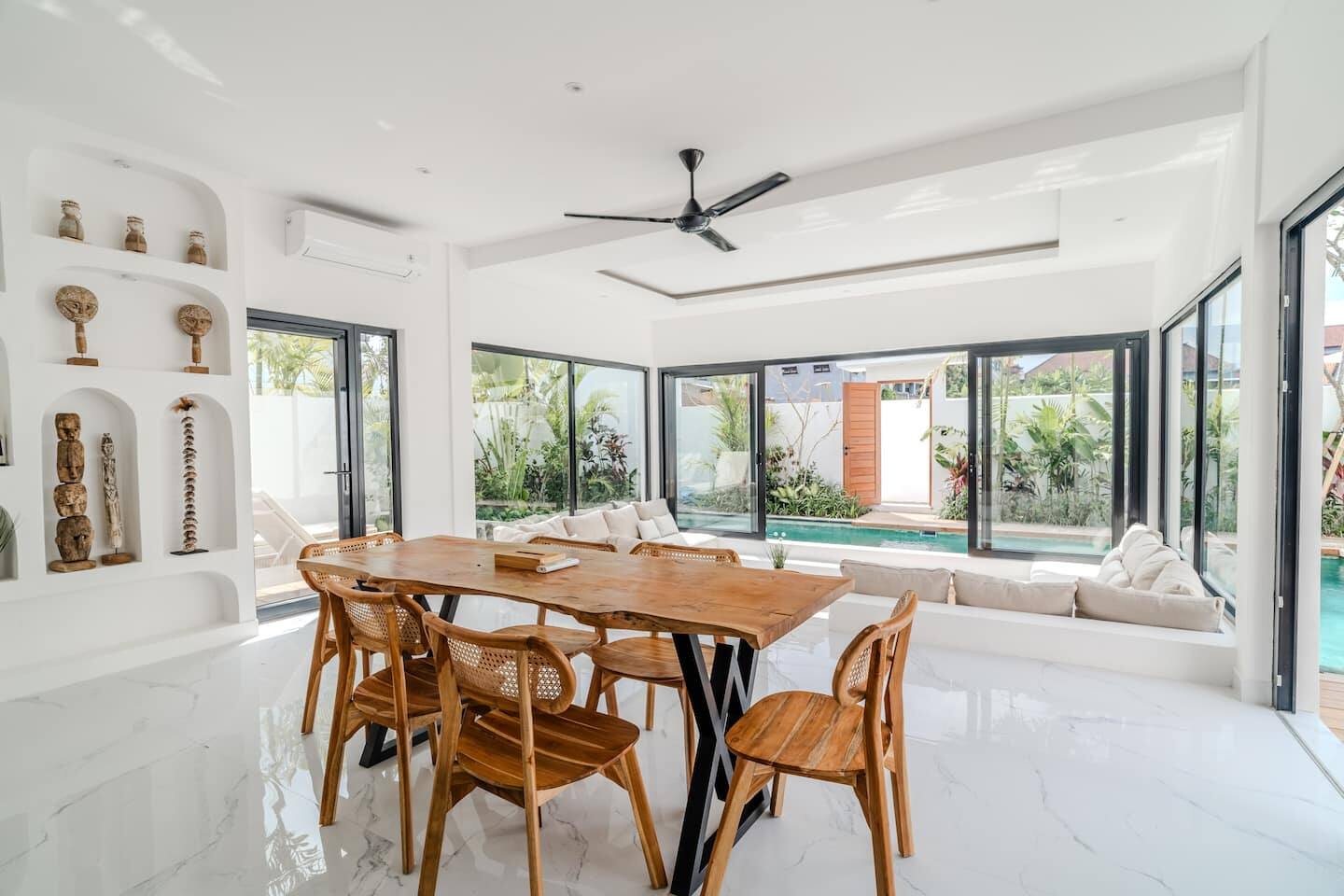 The villa features two well-proportioned bedrooms, each with its own bathroom, and a clean, minimalist interior finished in warm tropical tones. Natural light, soft textures, and functional layouts make the home ideal for both full-time living and long-term rental use.