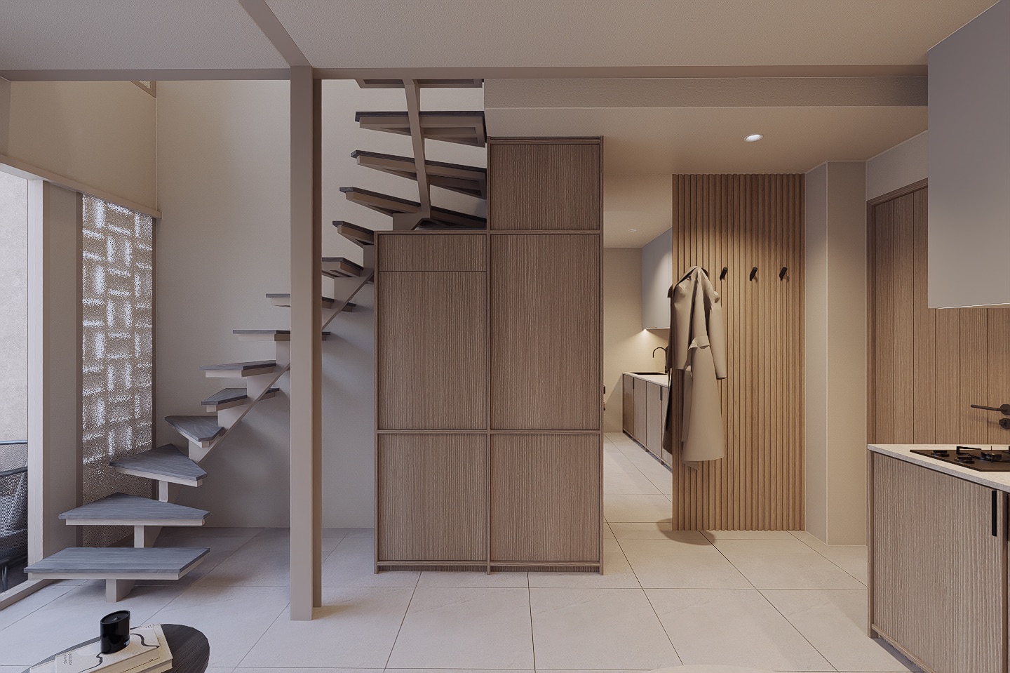 Construction started in January 2026 with completion targeted for November 2026. The villa features a two-level layout on a 35 m² land plot with 32 m² of building space, intelligently designed to maximize functionality while maintaining a clean, modern loft aesthetic.