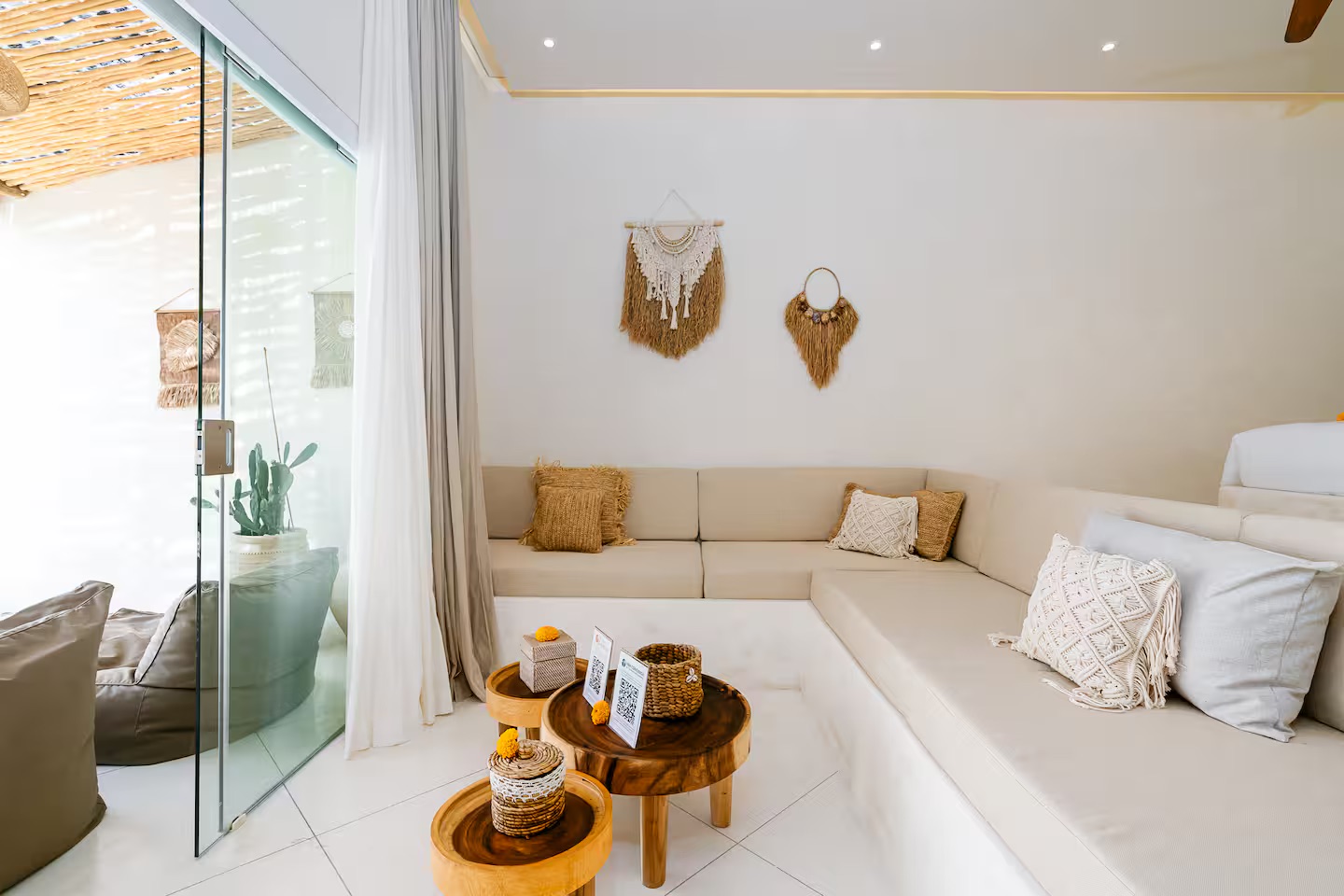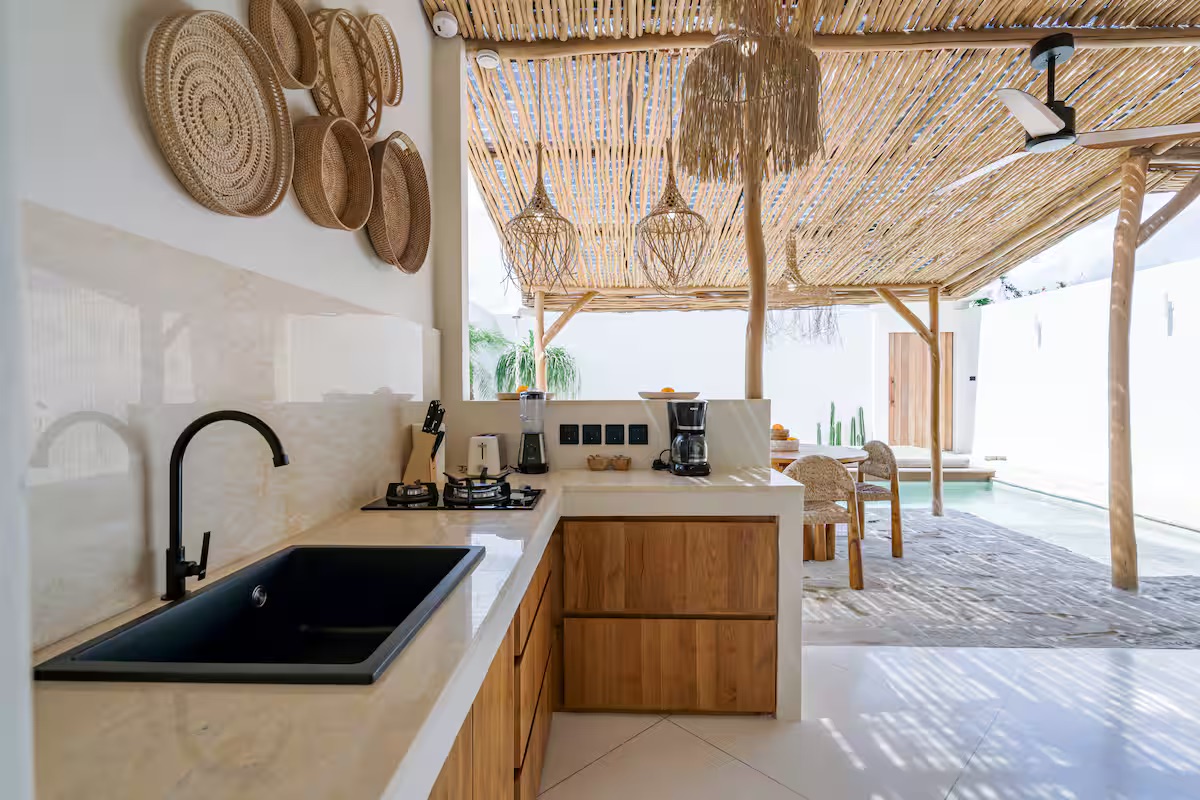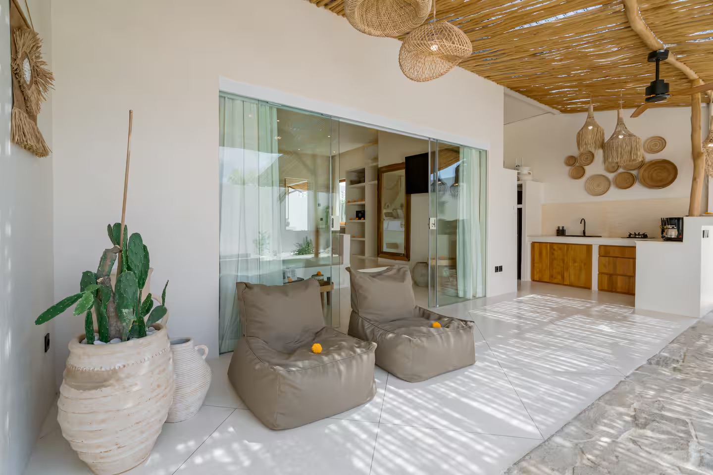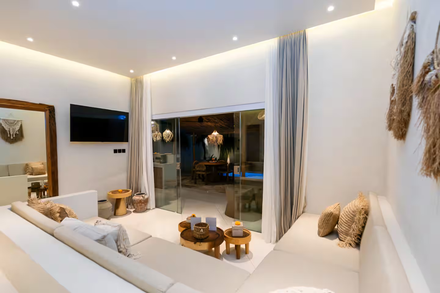 This beautifully designed 1-bedroom villa sits just 300 meters from Nyanyi Beach, offering the perfect balance between tropical tranquility and modern comfort. Inspired by traditional Mediterranean design, the villa features a cozy, stylish atmosphere with natural textures and soft tones throughout.
