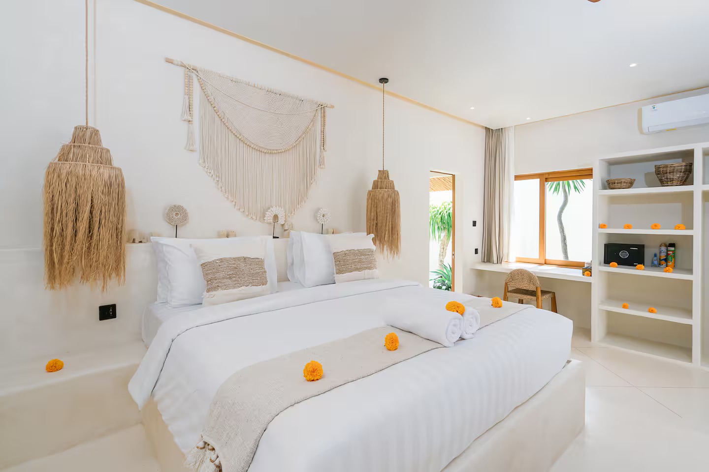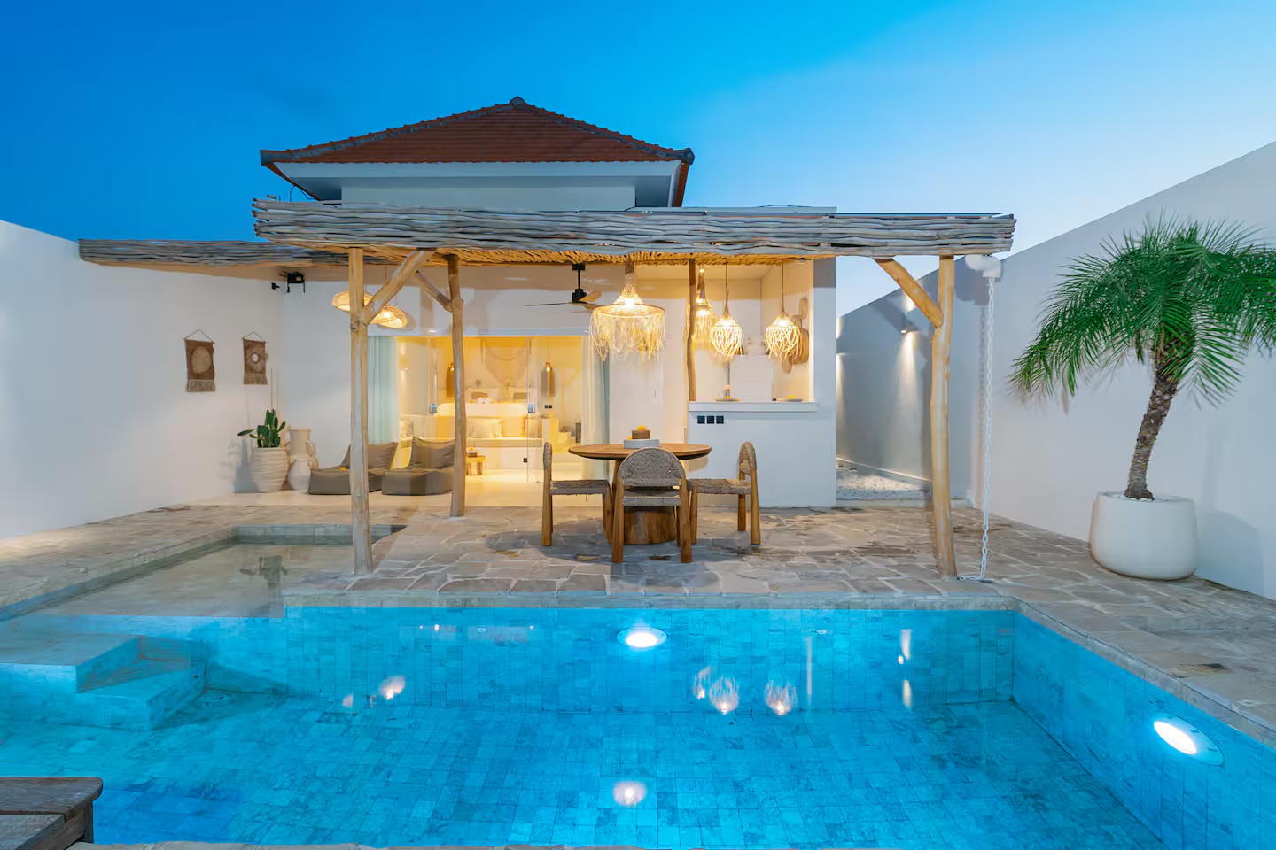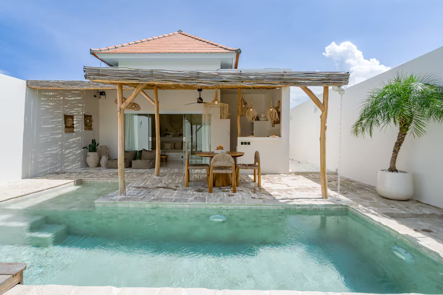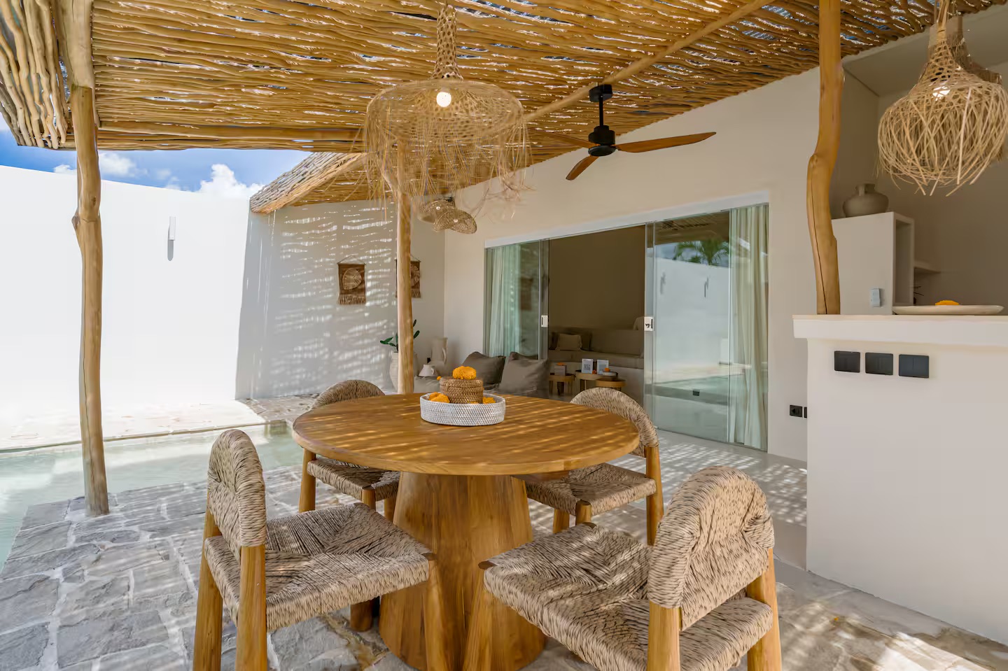 This beautifully designed 1-bedroom villa sits just 300 meters from Nyanyi Beach, offering the perfect balance between tropical tranquility and modern comfort. Inspired by traditional Mediterranean design, the villa features a cozy, stylish atmosphere with natural textures and soft tones throughout.