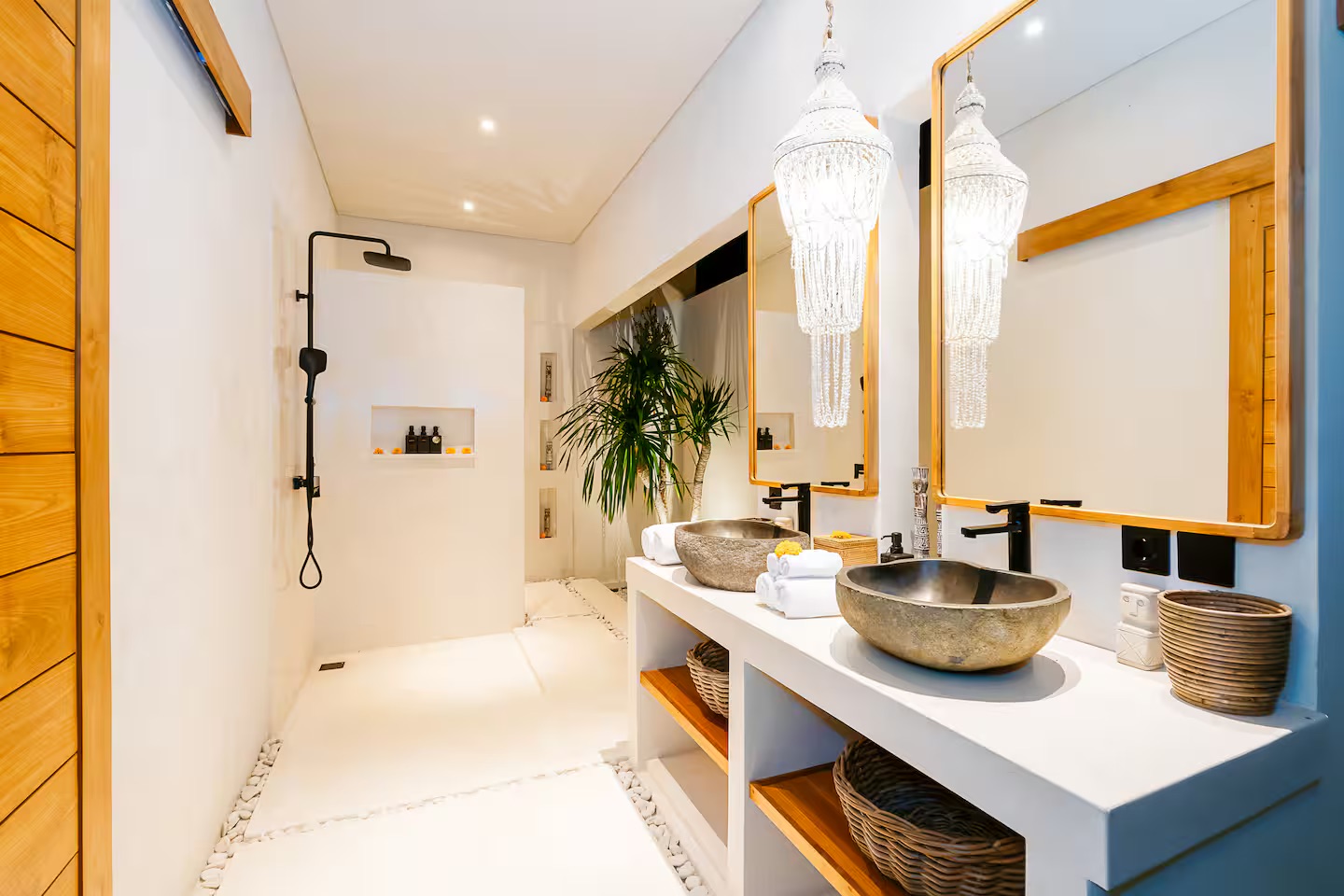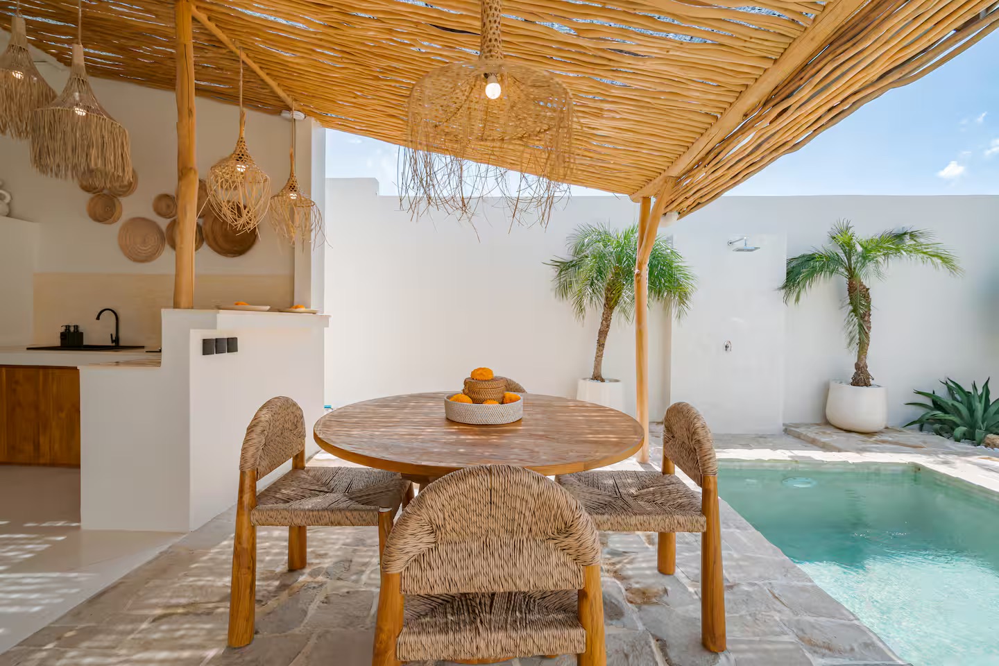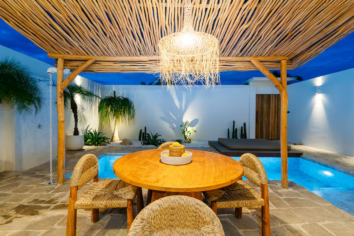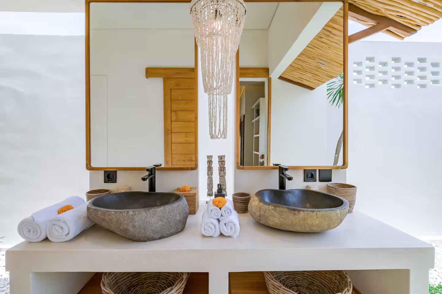 This beautifully designed 1-bedroom villa sits just 300 meters from Nyanyi Beach, offering the perfect balance between tropical tranquility and modern comfort. Inspired by traditional Mediterranean design, the villa features a cozy, stylish atmosphere with natural textures and soft tones throughout.