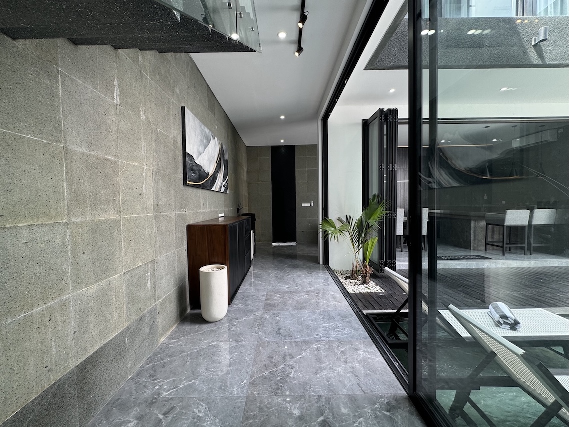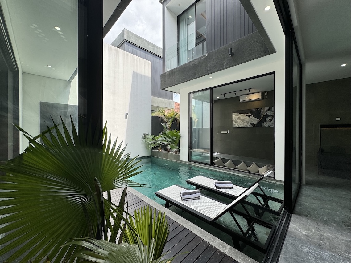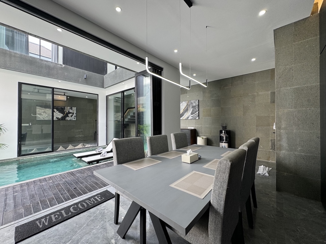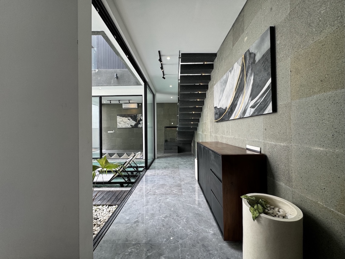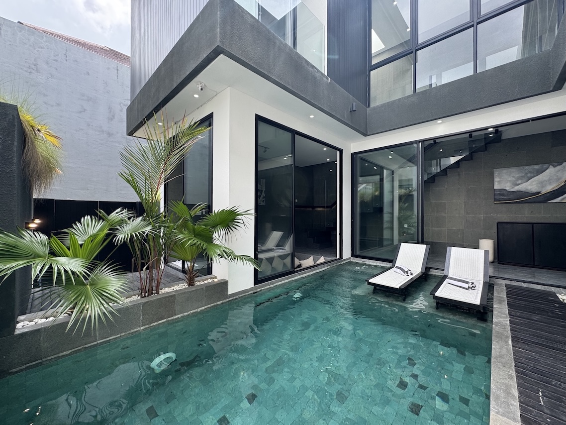 Located in the vibrant yet residential pocket of Kerobokan–Umalas, this 3-bedroom villa blends bold modern design with tropical comfort. Finished in October 2024, it offers the perfect combination of sleek architecture, functional living, and high rental potential — ideal for both families and investors.