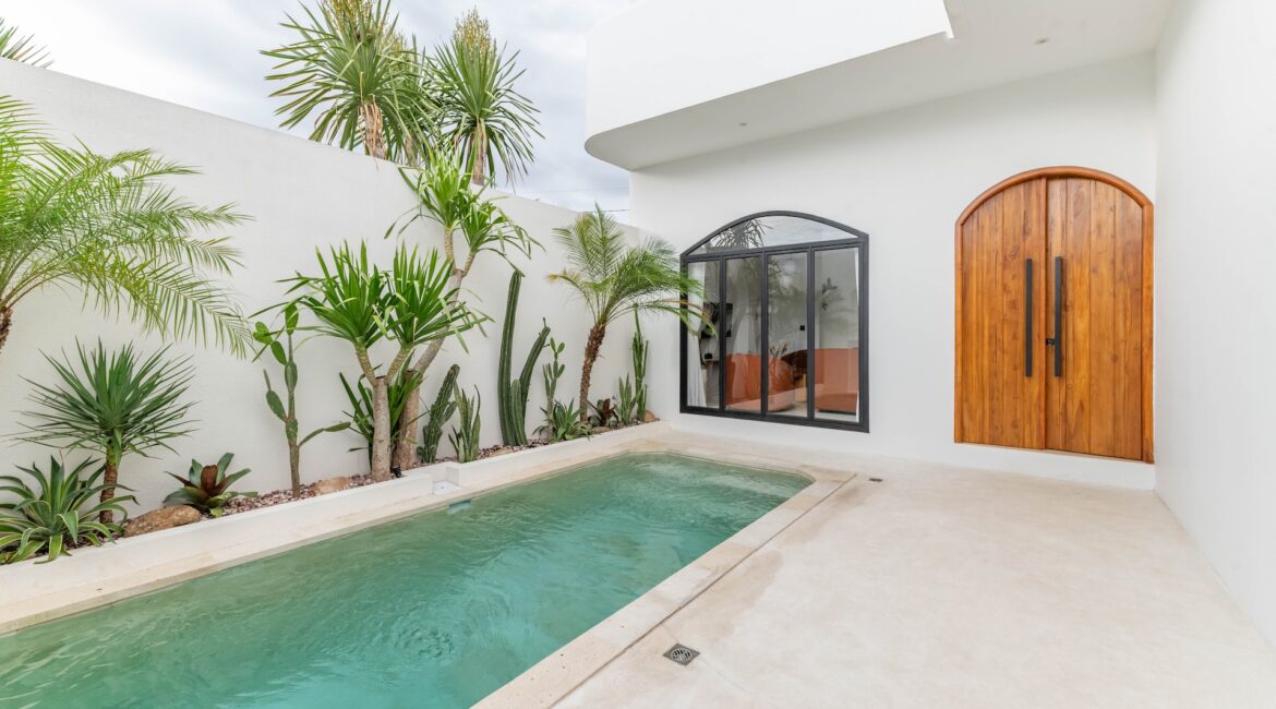 Built on 110m² of land with a 148m² building size, each villa features 2 bedrooms and 3 bathrooms, a bright hybrid-plan living, dining, and kitchen area, and a private pool (2.5 x 5m) surrounded by tropical greenery.