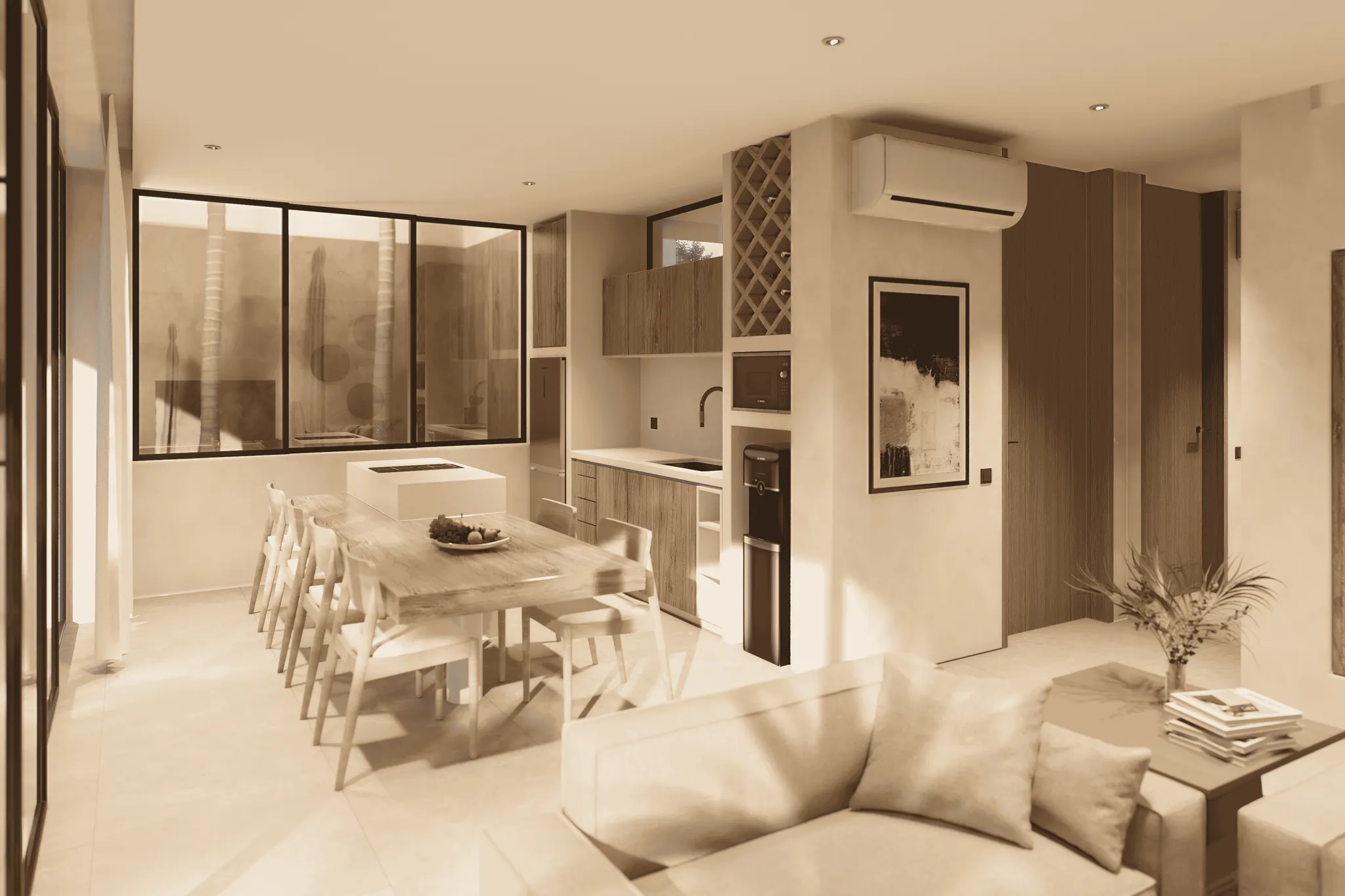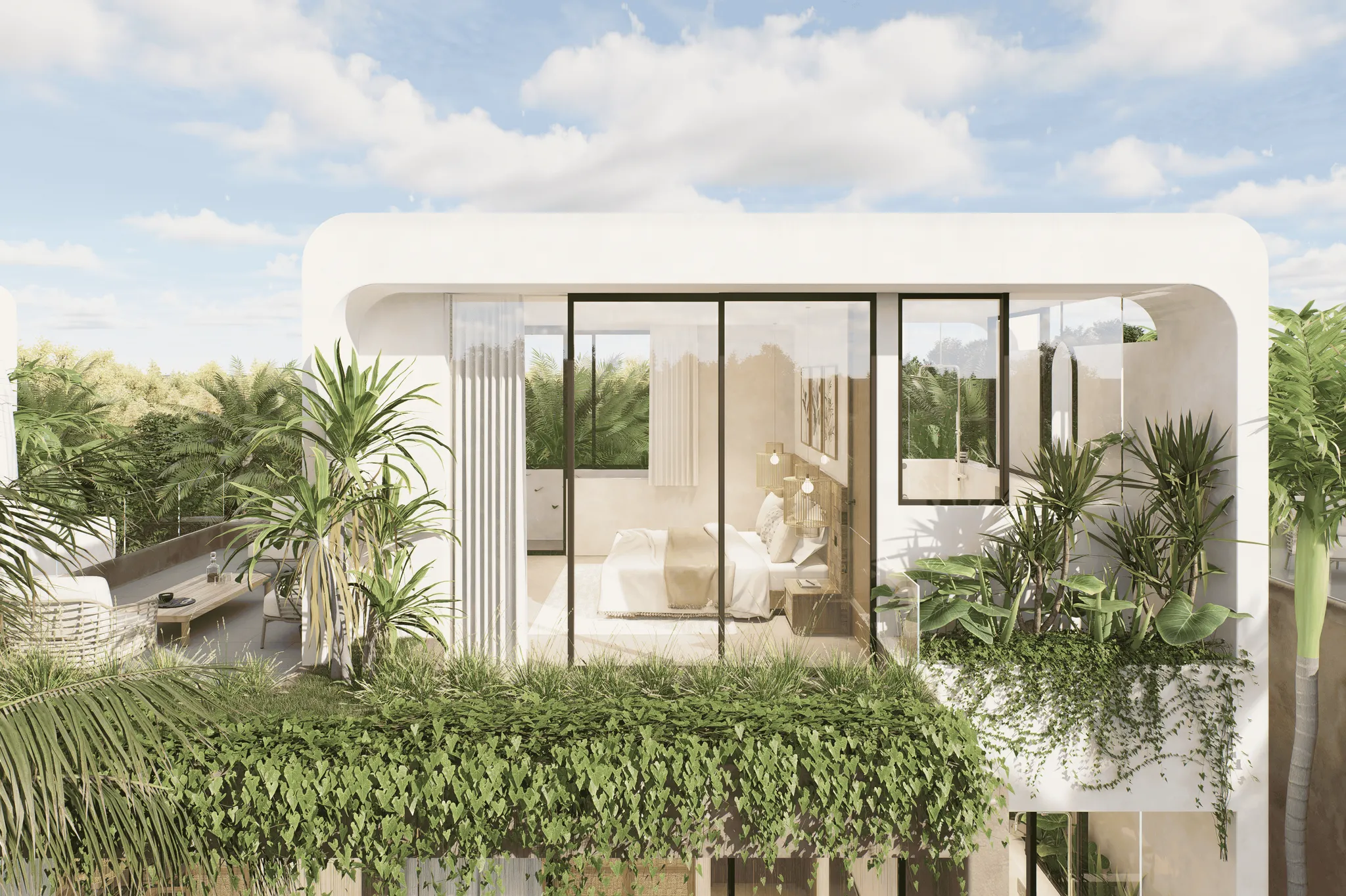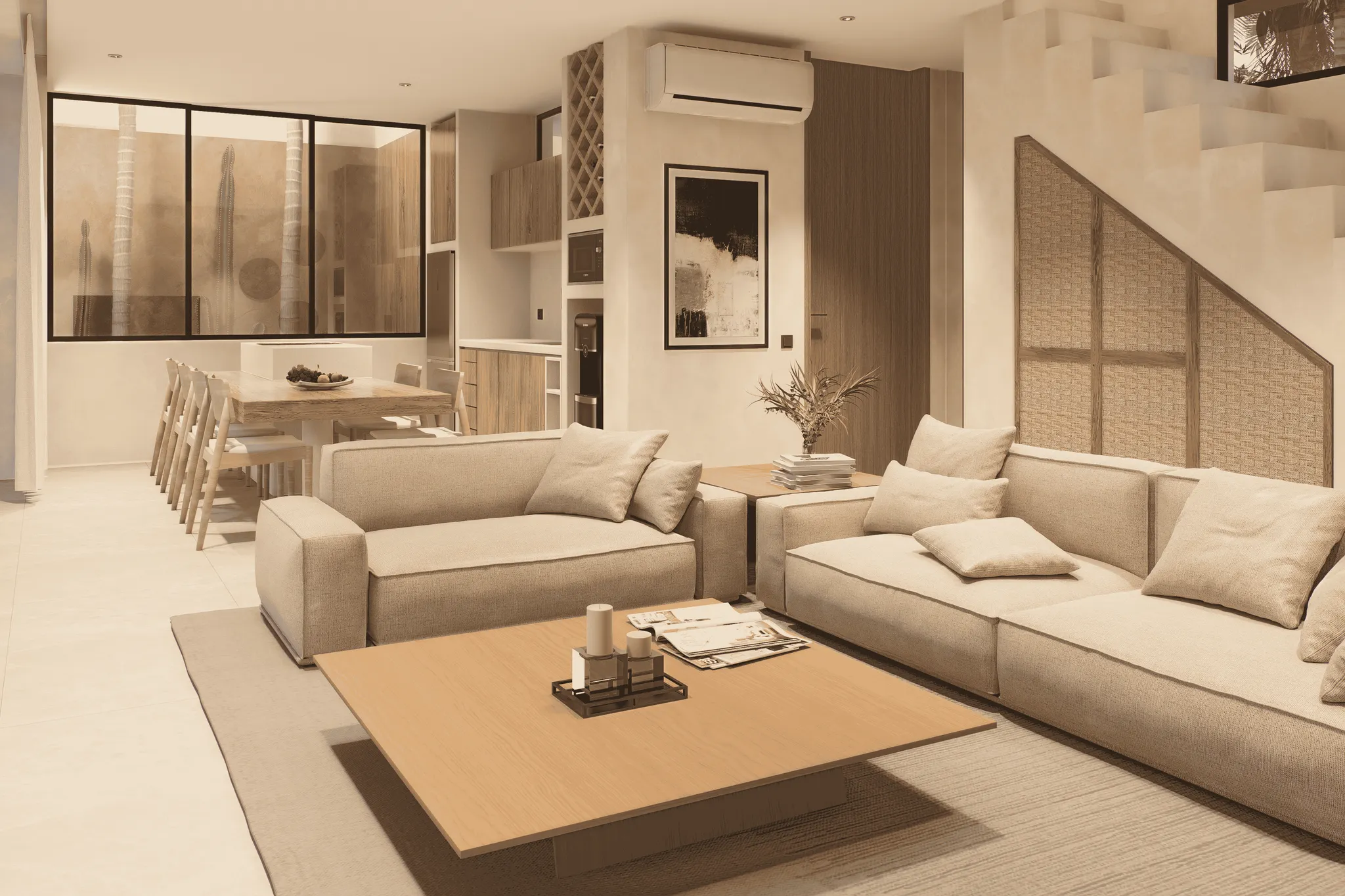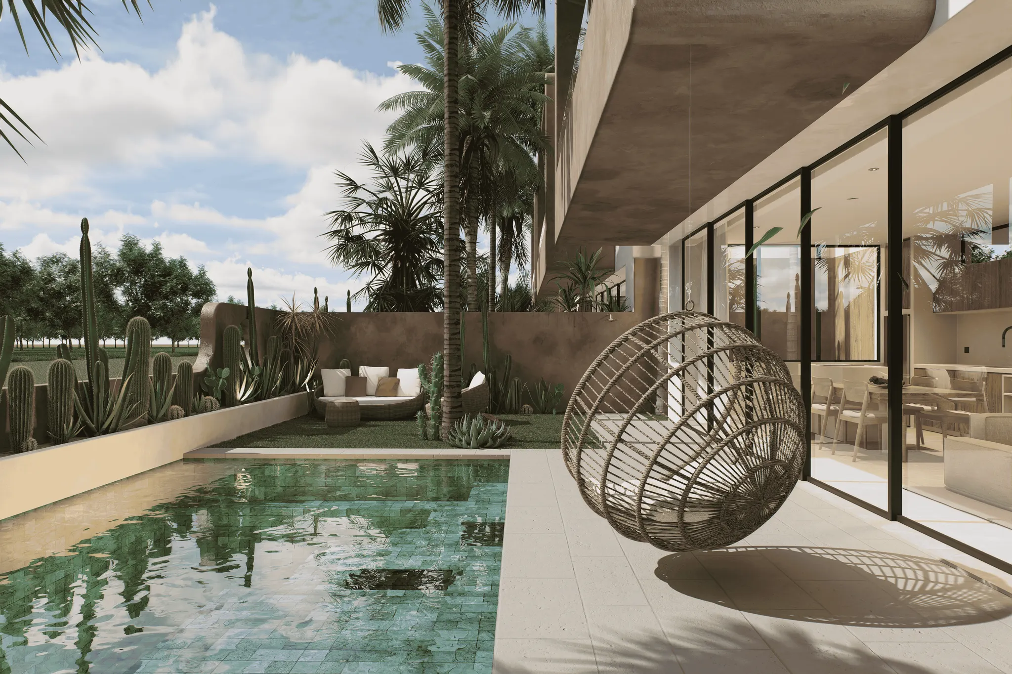 Located just 300 meters from the shoreline, The Dune Collection offers a unique blend of desert inspired elegance and tropical tranquility. These three bedroom villas are designed with expansive floor to ceiling glass that fills every space with natural light, creating a seamless connection between the indoors and the surrounding landscape. Set within palm trees, sandy textures, and lush cactus gardens, each home feels like a private oasis crafted for peaceful living.