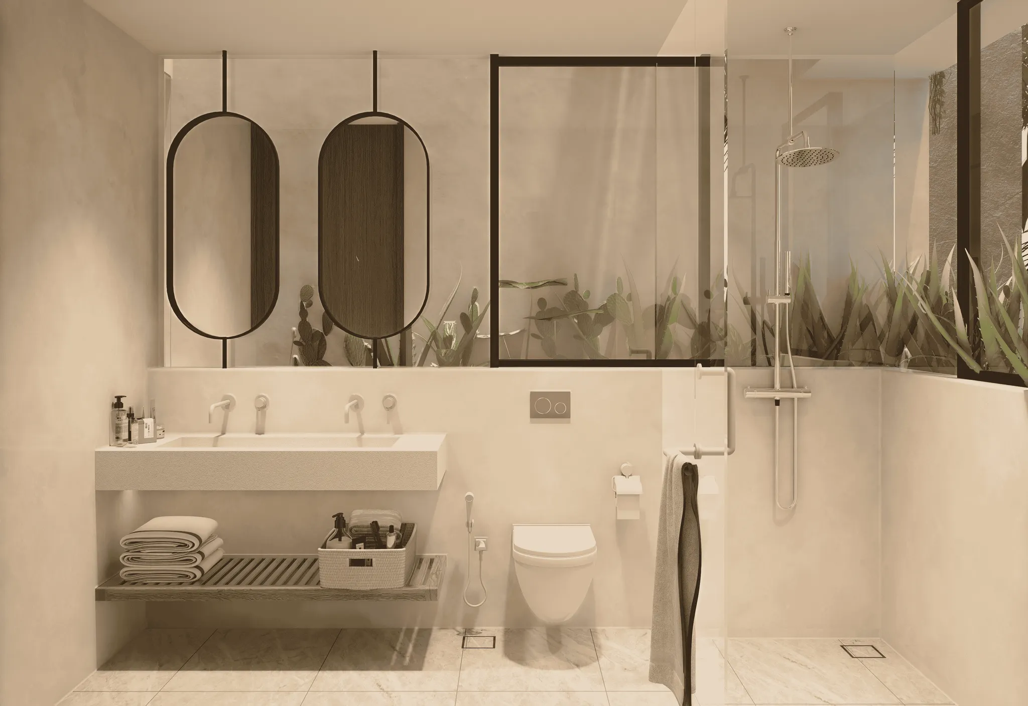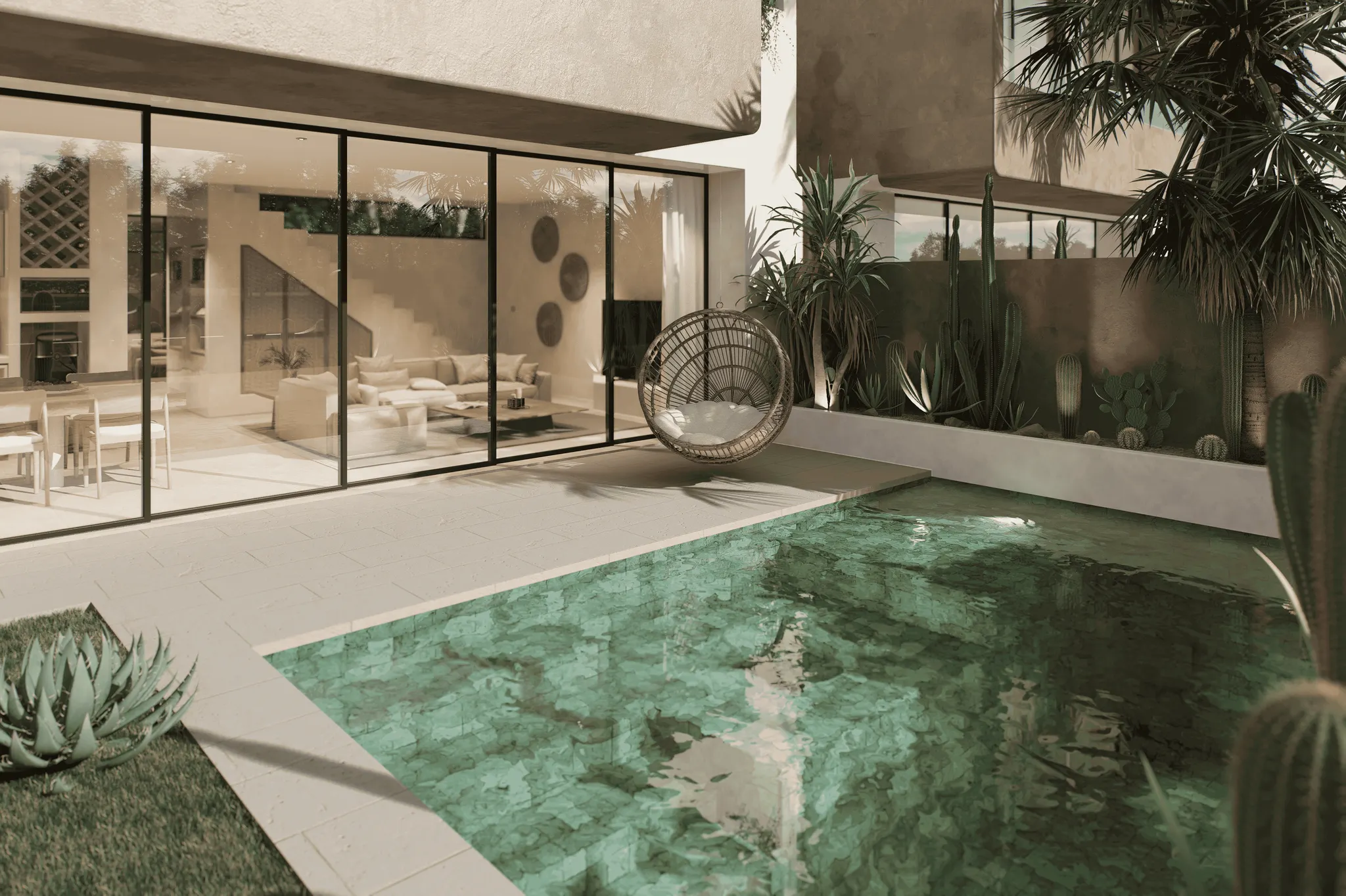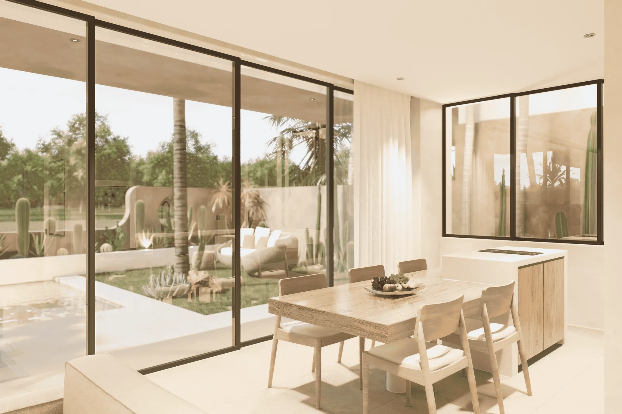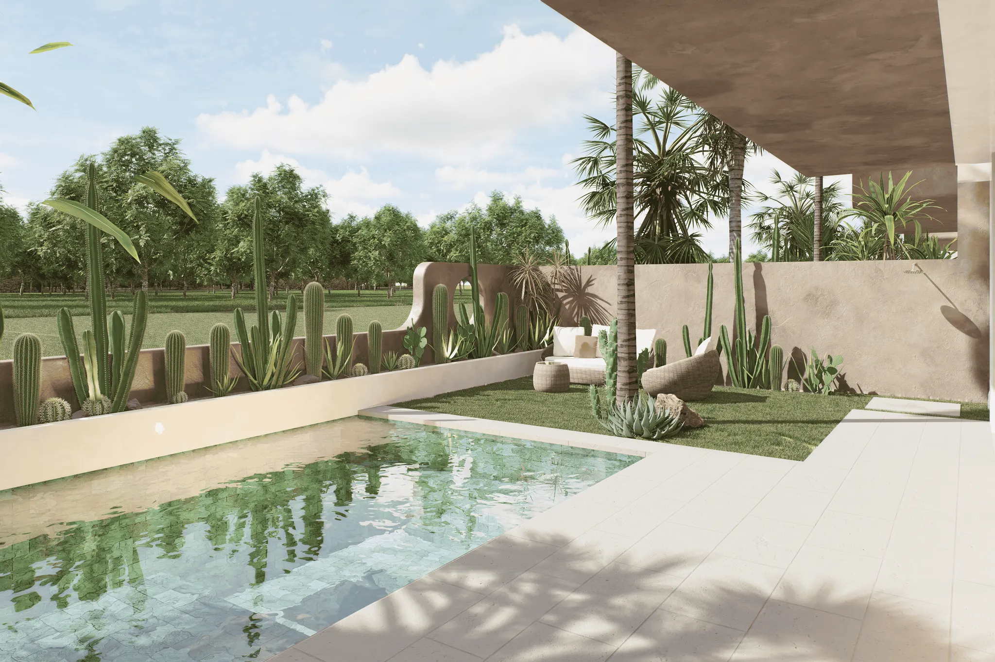 Located just 300 meters from the shoreline, The Dune Collection offers a unique blend of desert inspired elegance and tropical tranquility. These three bedroom villas are designed with expansive floor to ceiling glass that fills every space with natural light, creating a seamless connection between the indoors and the surrounding landscape. Set within palm trees, sandy textures, and lush cactus gardens, each home feels like a private oasis crafted for peaceful living.