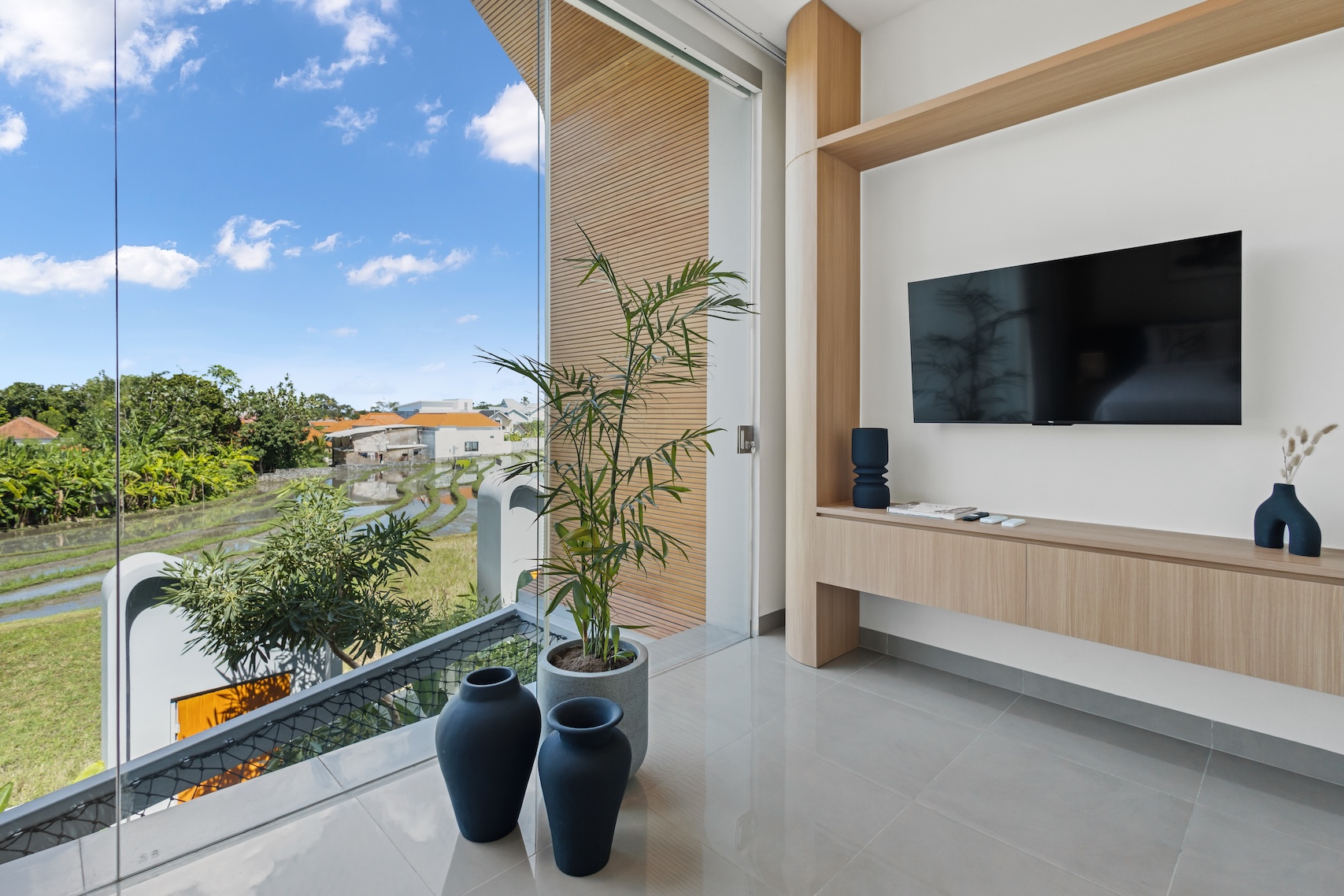 Built on 100 m² of land with a 142 m² three-level build, this villa has been thoughtfully designed to maximize space and functionality. It features two ensuite bedrooms, a fully enclosed living and dining area, and contemporary interiors with high-quality materials. A private rooftop terrace offers an additional retreat space with open rice field views, perfect for relaxing or entertaining.